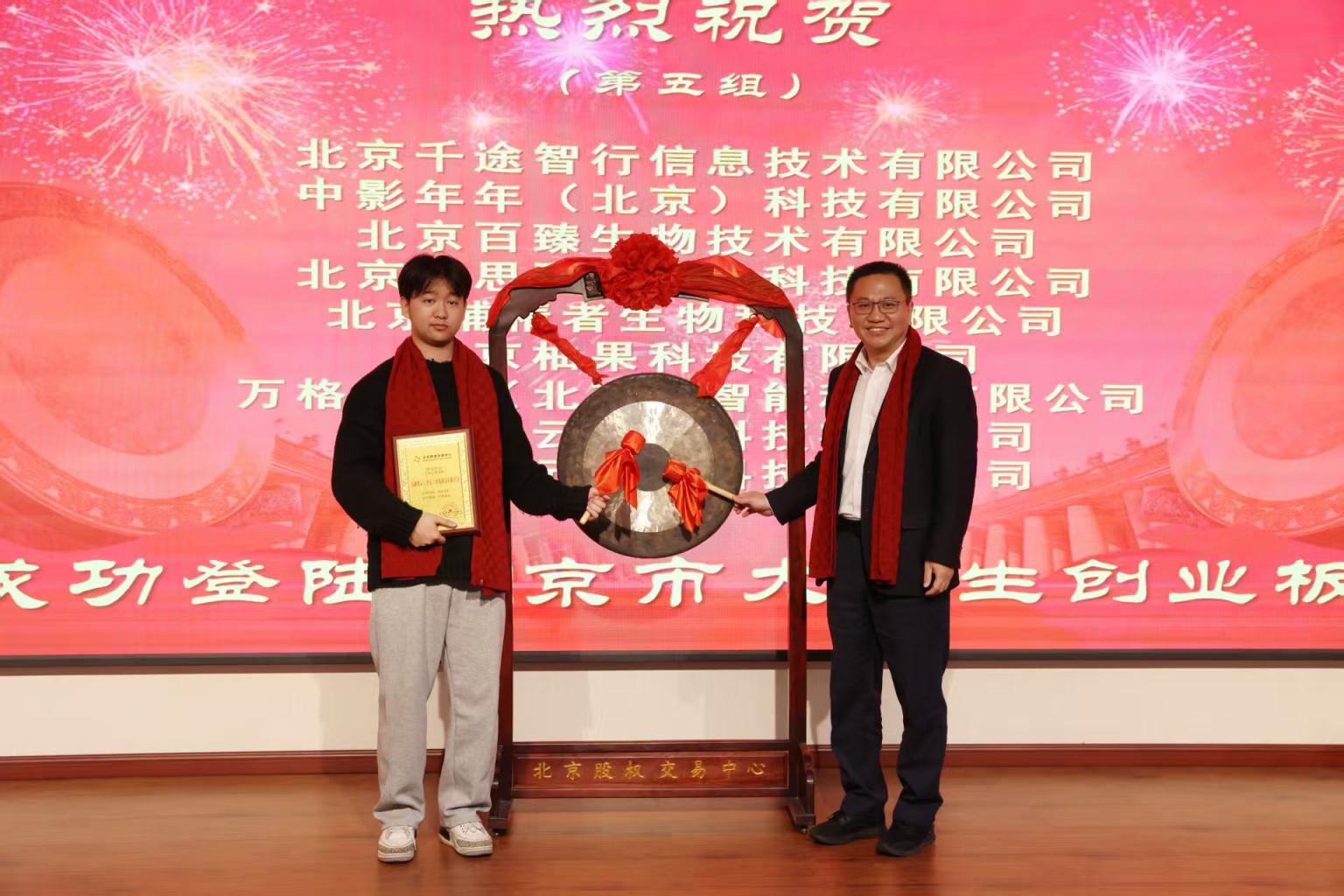 活动由北京市人力资源和社会保障局指导、北京股权交易中心(简称北股交)主办。微检科技、清芯万物、富通康影等53家新增入板企业参加敲锣授牌仪式,标志着这些企业正式登陆大创板,可享受系列政策及资本市场服务,并同步举行孵化基地授牌,为大学生科创企业提供政策、资本、孵化全链条支持。