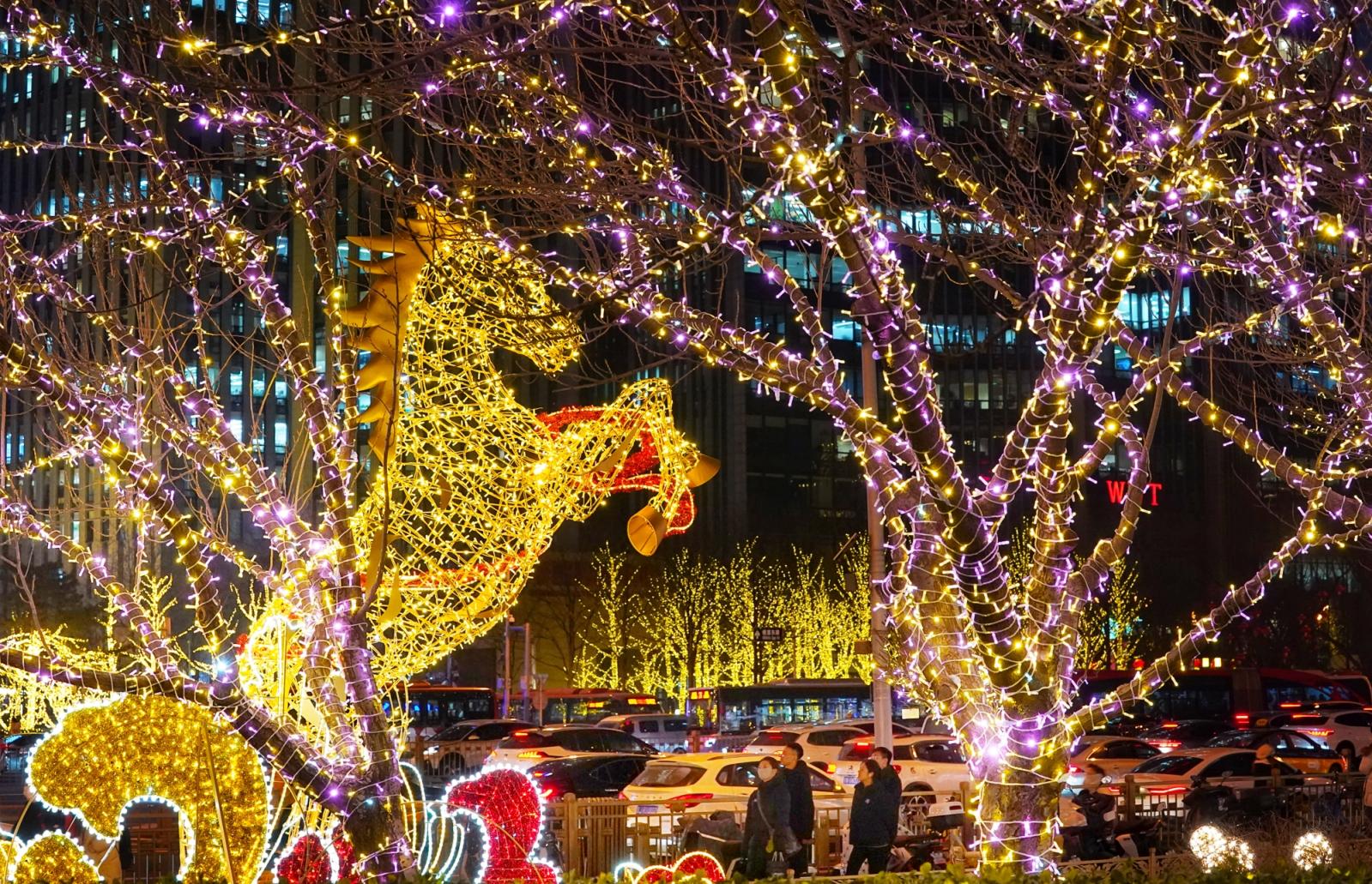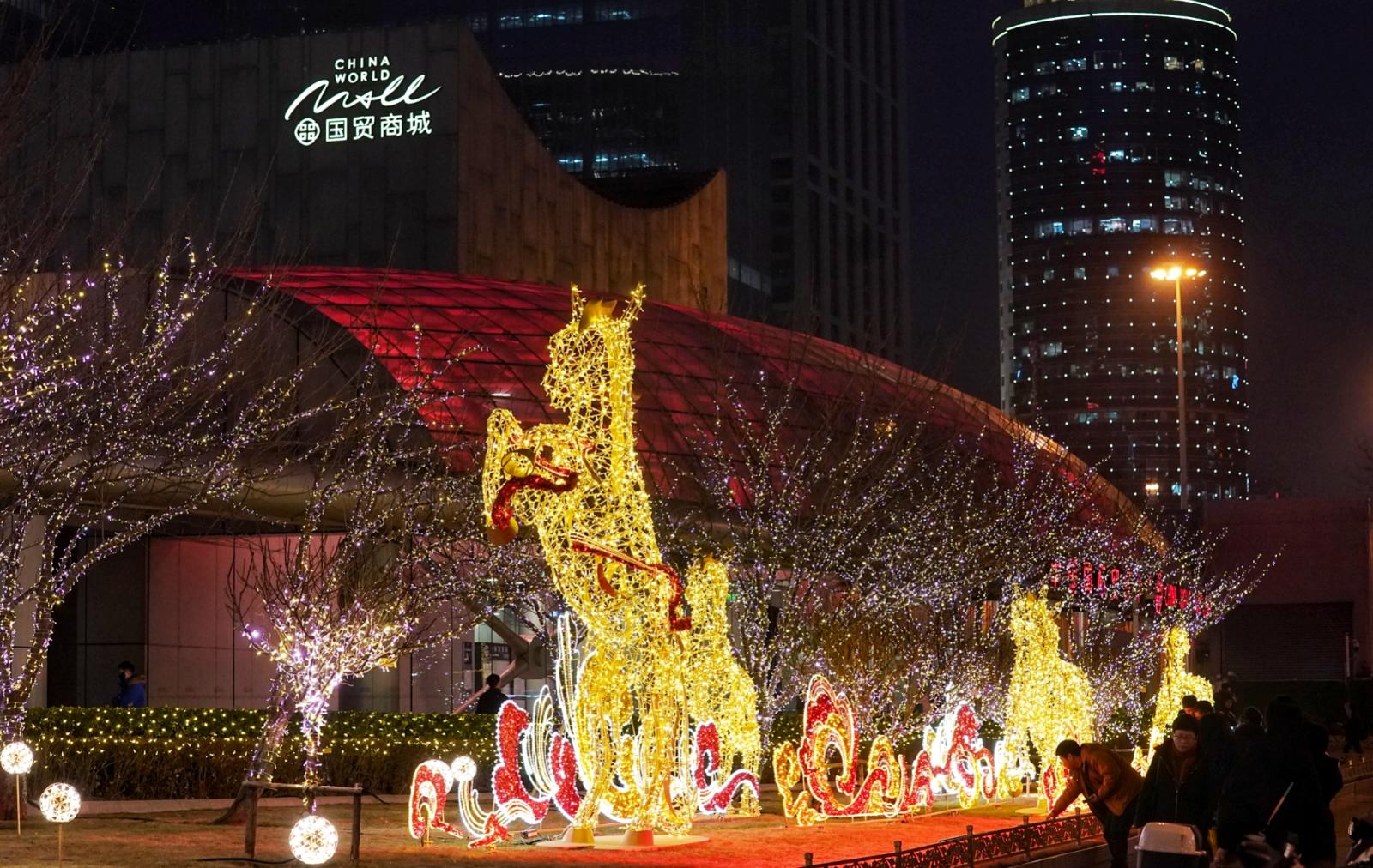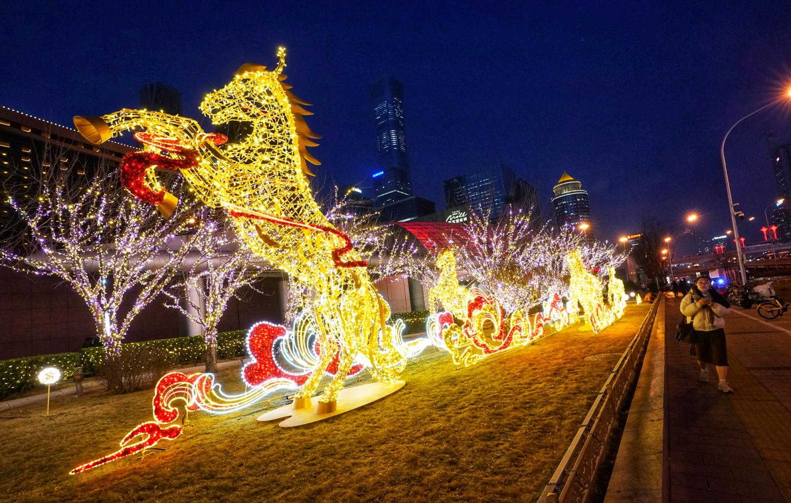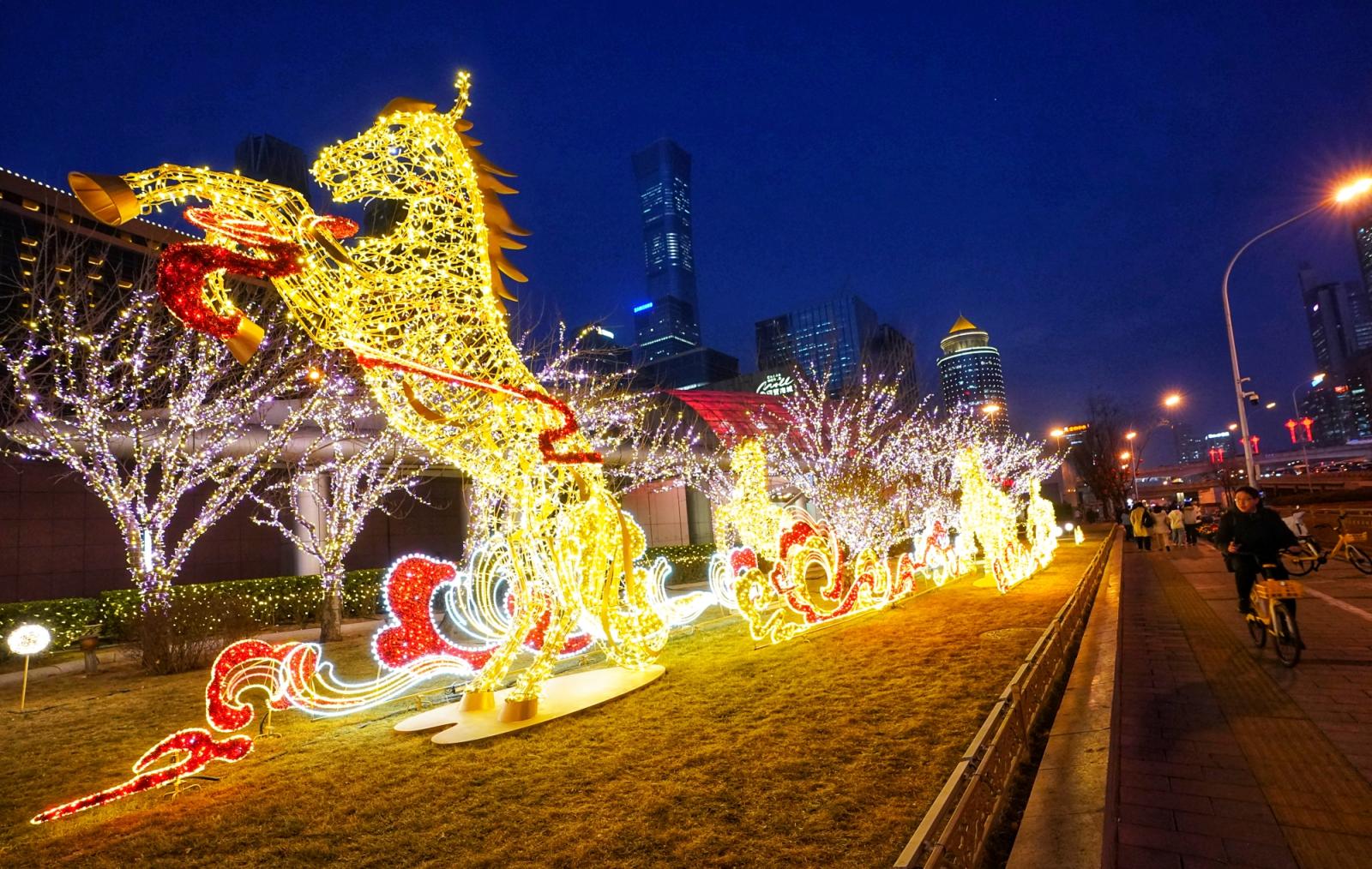 新春佳节将至,北京商务中心区(CBD)换上璀璨新装,以流光溢彩的光影设计融合丙午马年生肖文化元素,打造出兼具视觉冲击力与传统年味的城市新春图景,为市民与游客带来沉浸式节日体验。