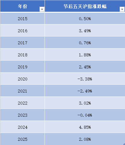 春节后5个交易日,上涨概率高达70%,其中2024年节后涨幅最大,达4.85%。量能层面,呈现“节前缩量、节后放量”的特征。