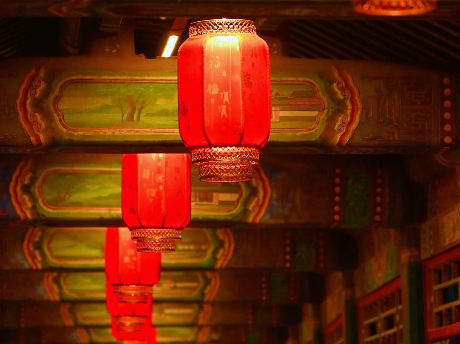 728米长廊内的宫灯亮起,这就是腊月里颐和园的中式美学