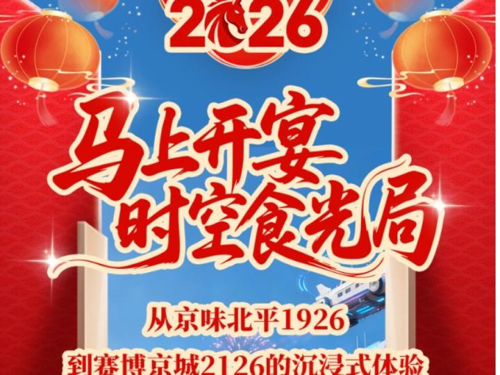 2月10日,记者从陶然亭公园获悉,“马上开宴·时空食光局——2026北京餐饮年货节·陶然亭游园会”将于2月17日(农历正月初一)至2月21日(农历正月初五)在陶然亭公园北门广场、东门广场及东门至北门沿线盛大启幕。这场以“双时空穿越”为核心的新春盛宴,打造了“复古1926·京味北平”与“未来2126·赛博京城”两大主题体验,将为市民呈现集文化沉浸、美食品鉴、互动打卡于一体的文商旅融合新体验。