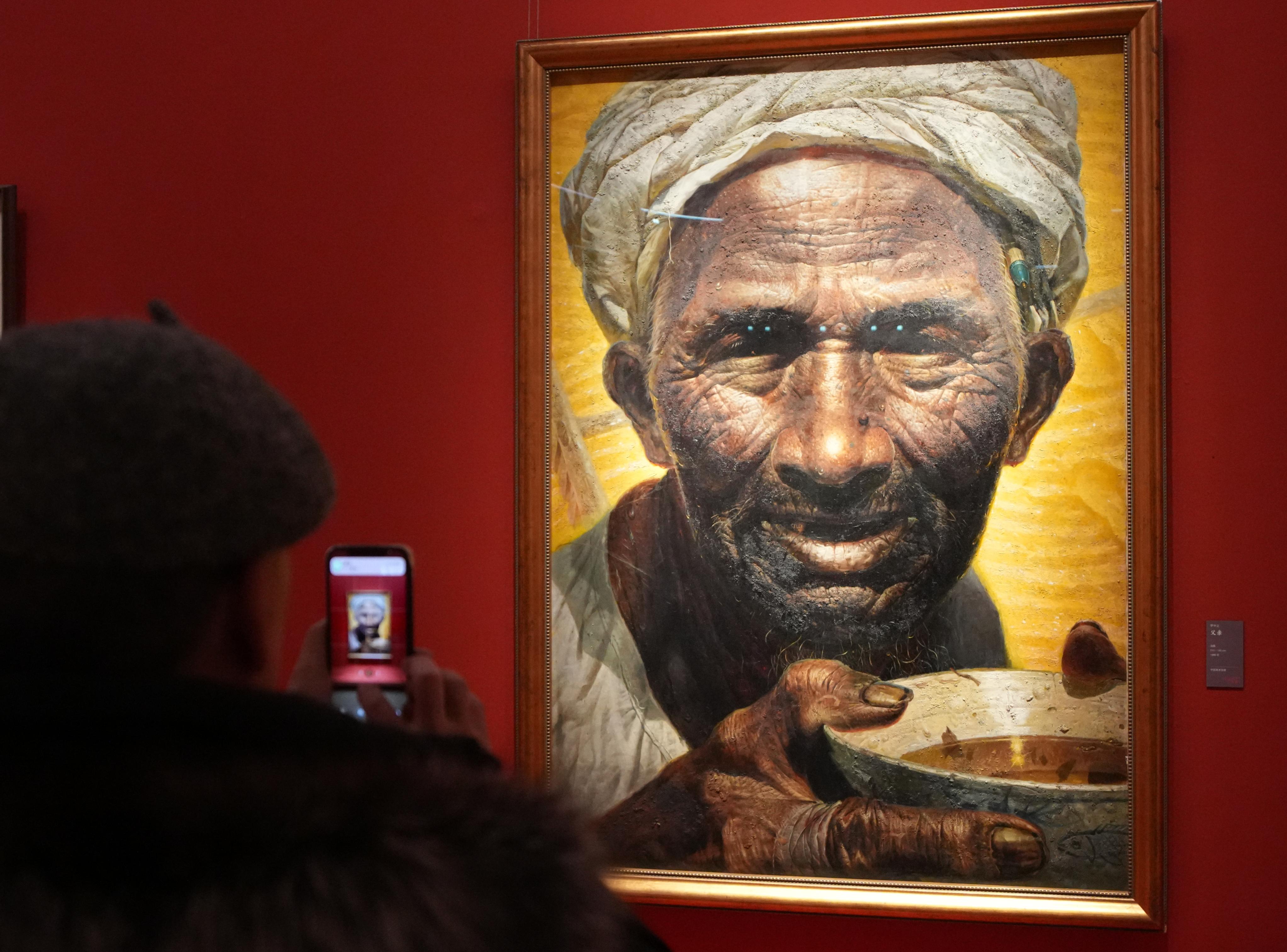 走进美术馆一层展厅,靳尚谊《塔吉克新娘》、罗中立《父亲》、詹建俊《天地行》、吴为山《空谷有音——老子出关》等经典之作构成一道厚重的艺术长廊。“奔腾启新——致敬老艺术家美术精品展”汇集老艺术家们的经典与新作,并与中青年名家精品同台辉映,不仅营造出吉庆祥和的节庆氛围,更在历史与现实的对话中,彰显中国美术绵延不绝、生机勃勃的生命力。