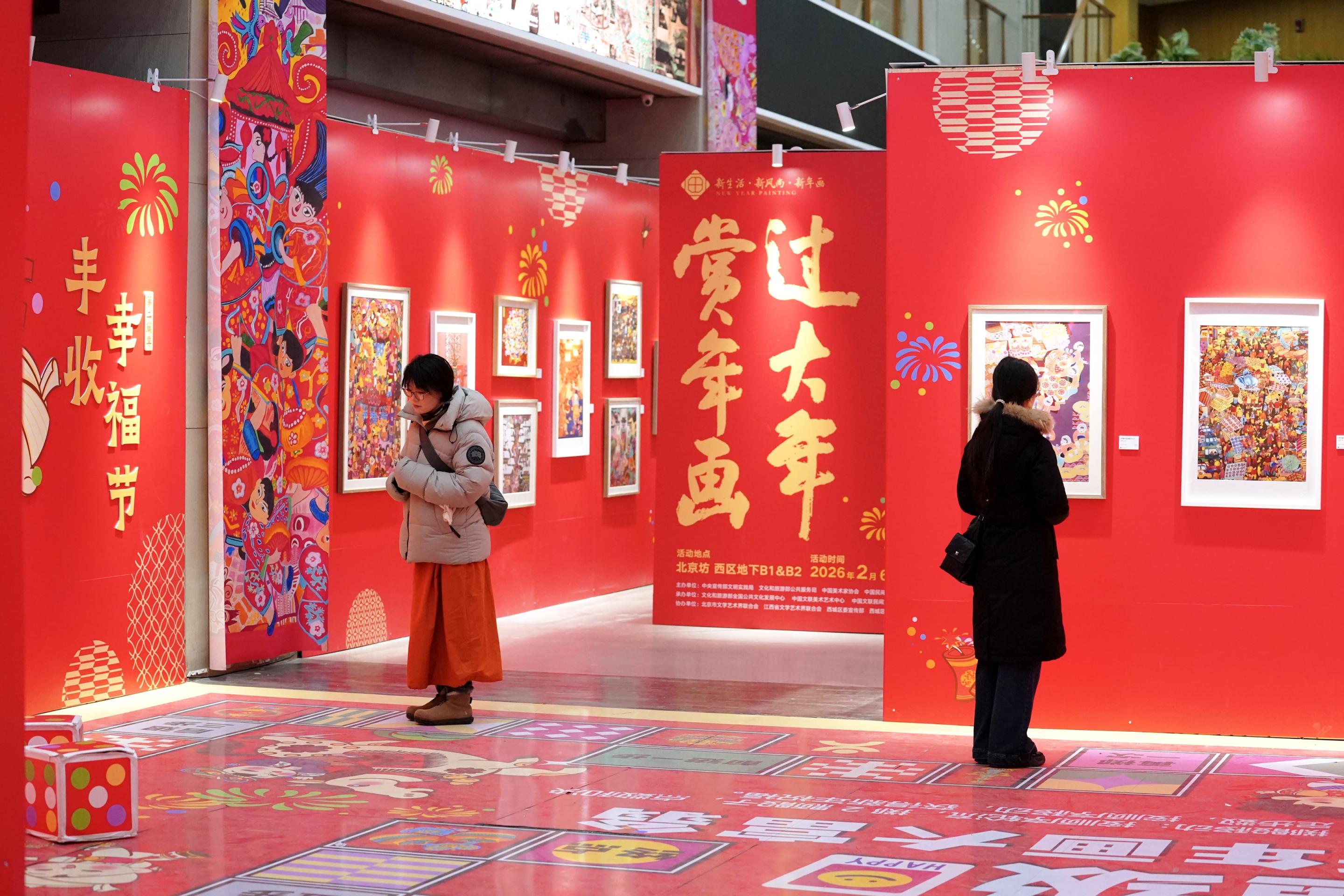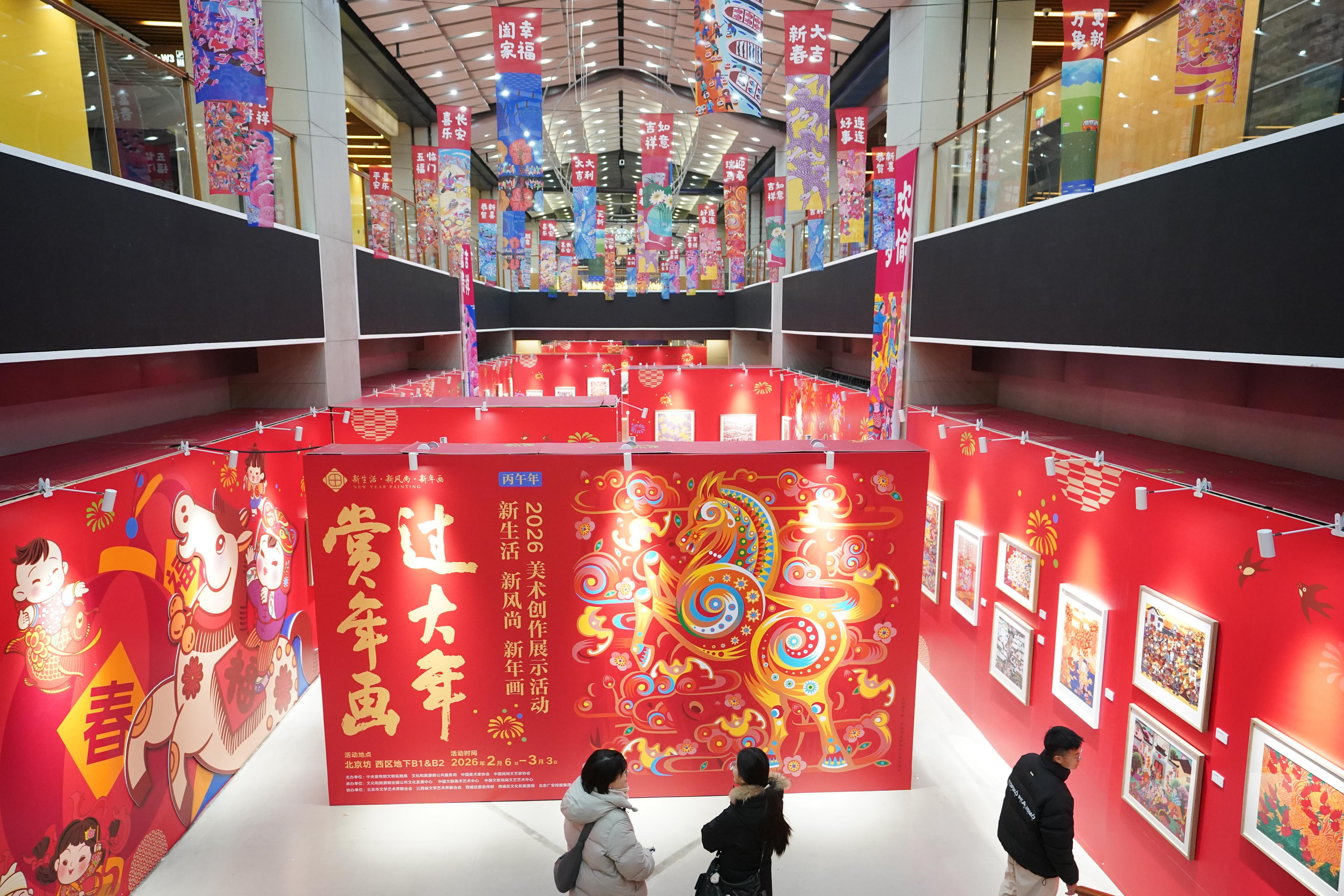 2月10日,由中央宣传部文明实践局、文化和旅游部公共服务司、中国美术家协会、中国民间文艺家协会联合主办的“赏年画 过大年——新生活 新风尚 新年画2026美术作品展”落地北京坊,同步亮相的还有2026“驰光逐画”新春插画绘本系列作品展,以多元艺术形式点亮新春文化生活。