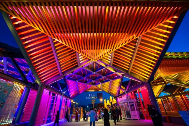 眼下,正值世园第四届花灯艺术节“天宫灯会”火热举办,世园国际旅游度假区以经典动画作品《大闹天宫》为蓝本打造“天宫灯会”,南天门、水帘洞、龙宫、蟠桃园等50余组动画造型大型花灯带领游客重温童年经典。灯会从1月23日持续至3月8日,横跨整个新春佳节,期间还将推出一系列特色节庆活动。