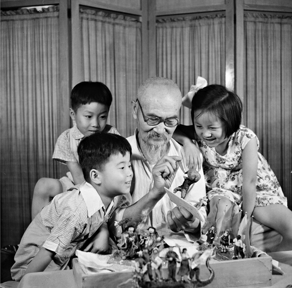 1959年,孩子们最喜欢围在“面人汤”汤子博爷爷身边看他捏面人,听他讲故事。高宏摄