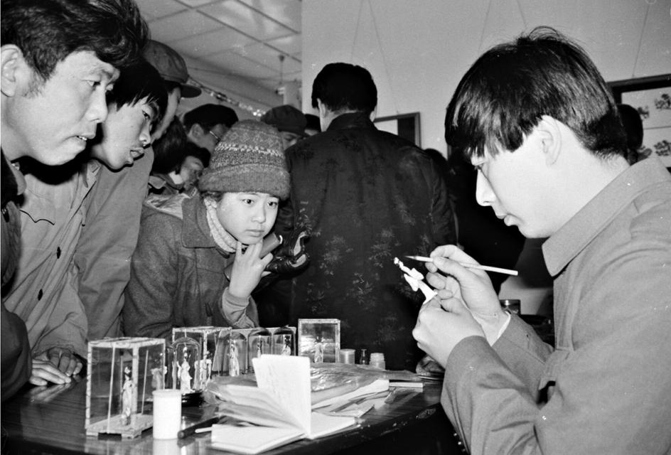 1985年,在地坛庙会上,手工艺人现场捏面人吸引了众多市民。 叶用才摄