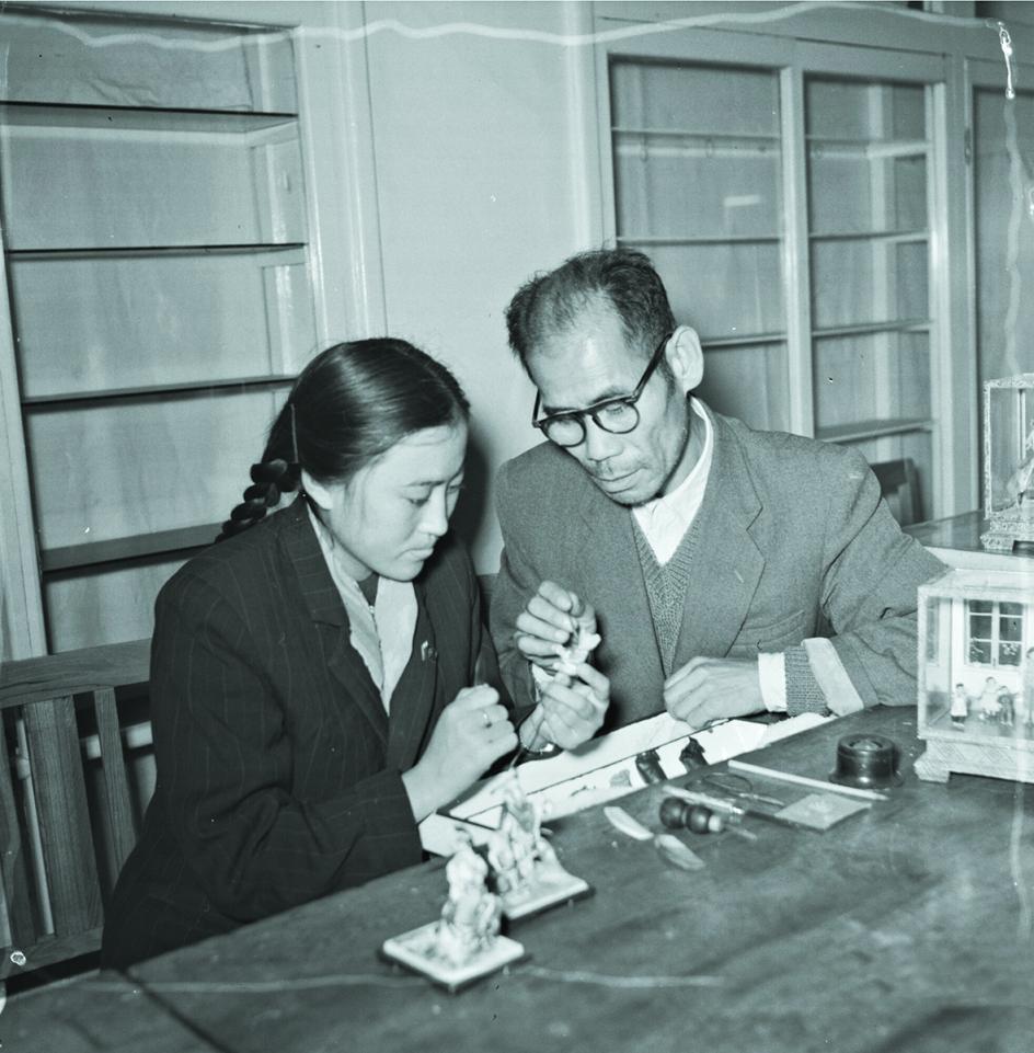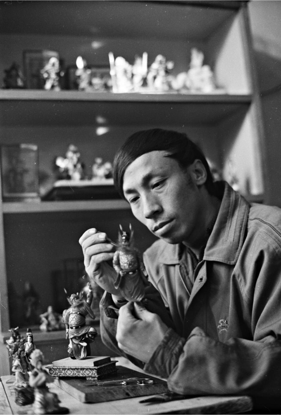 1960年,“面人郎”郎绍安在教徒弟。贺家宝摄