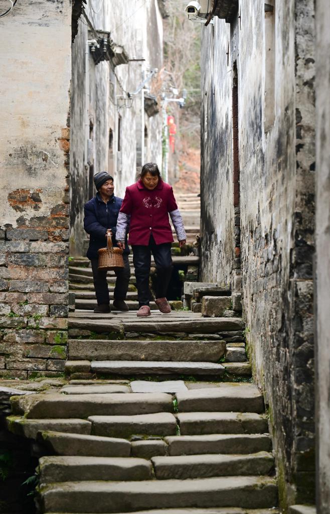 2月7日,游客在瞻淇村等待鱼灯表演。