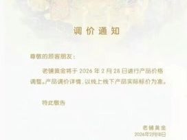 具体调价时间为2月28日,产品调价详情以线上线下产品实际标价为准。老铺黄金每年有2-3次调价。2025年,老铺黄金于2月、8月、10月三次上调售价。