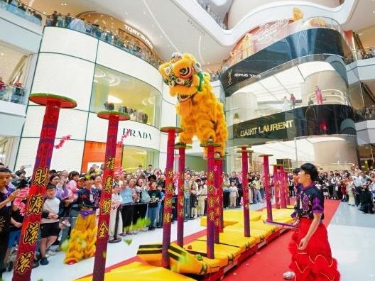 2月17日,市民游客在cdf海口国际免税城观看舞狮表演。cdf海口国际免税城 供图