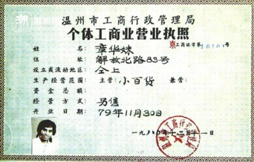 中国第一位个体工商户章华妹领证的1980年,温州有1000多名个体户申请了营业执照,催生出轰动全国乃至全世界的“温州模式”“四千精神”。