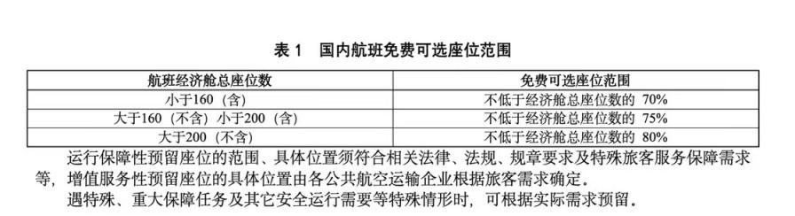 征求意见稿还规定,国内航班增值服务性预留座位仅限用于权益类预留座位,不准许开展付费选座;对携带婴儿的旅客和不满十二周岁的儿童旅客免费开放权益类预留座位;并要求国内航班免费可选座位比例最低为70%,国际及地区航班不低于65%。