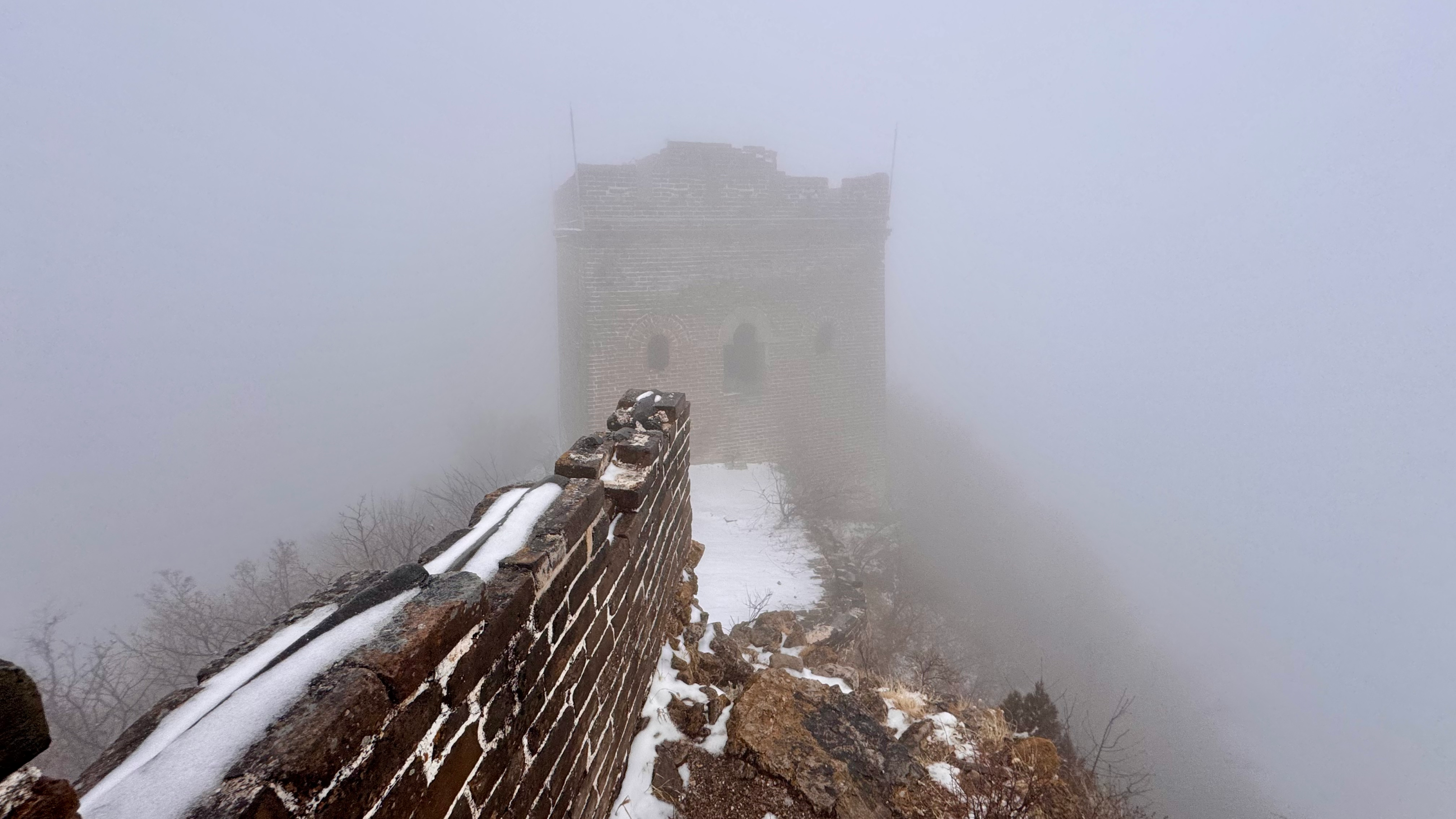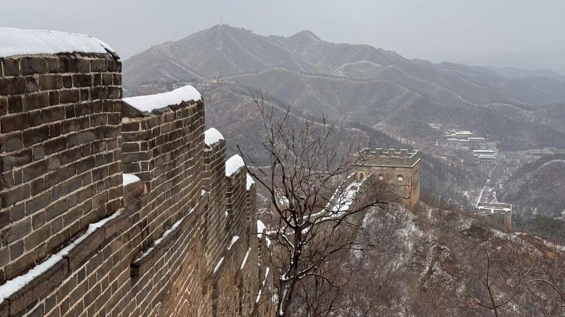 连日来的雨雪天气,河北省承德市滦平县金山岭长城被皑皑白雪覆盖,银装素裹,一派壮美北国风光景象。