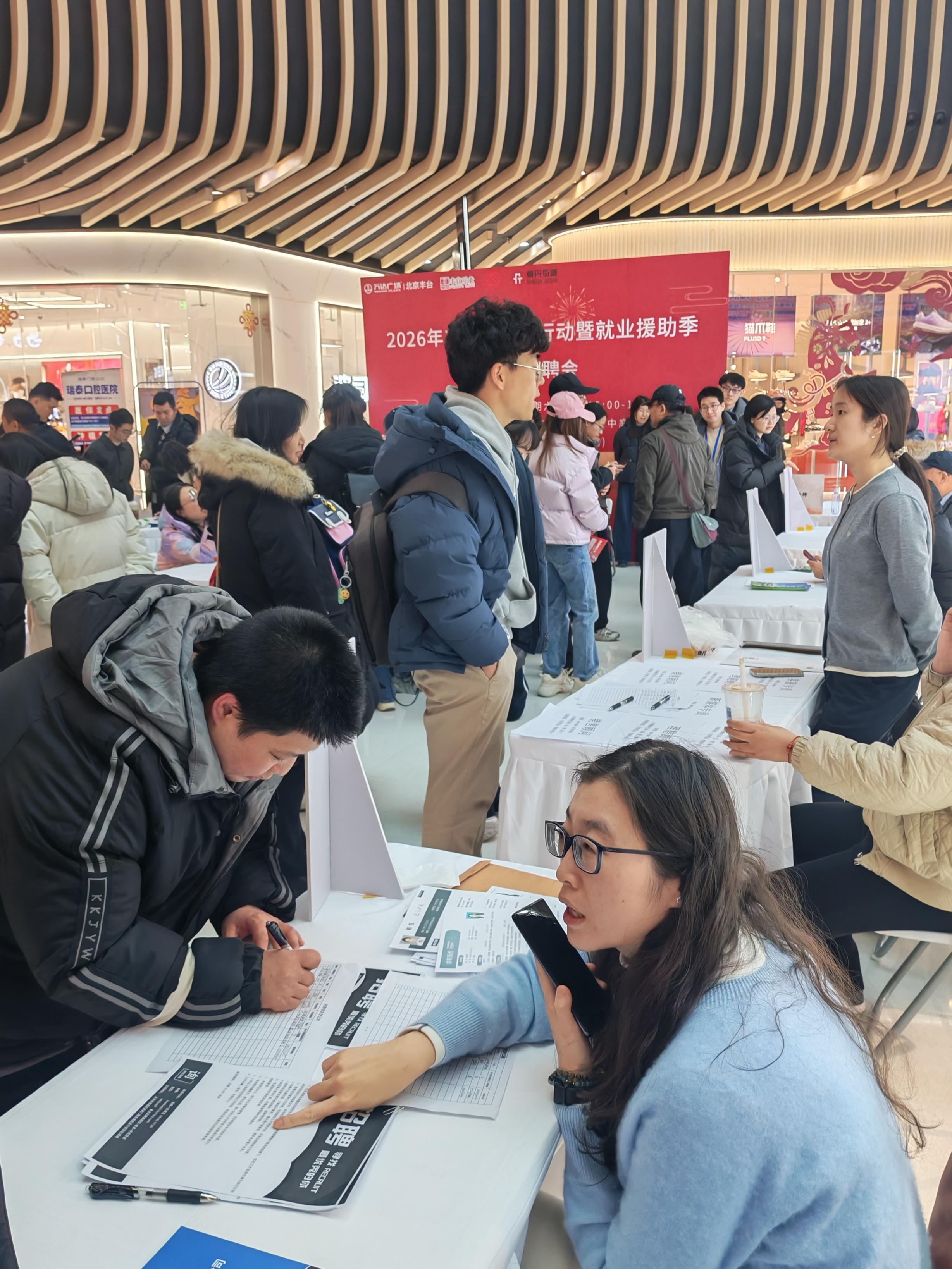 “这个岗位薪资是税前还是税后?有试用期吗?”节后上班第5天,一场招聘会在丰台区丰科万达广场内举行。现场16家招聘单位,为求职者提供了包括设计师、新媒体主播、家政服务、市场调研和销售等,超过3000个职位。由于招聘会专门开在人来人往的商场内大厅,现场求职氛围十分热闹。