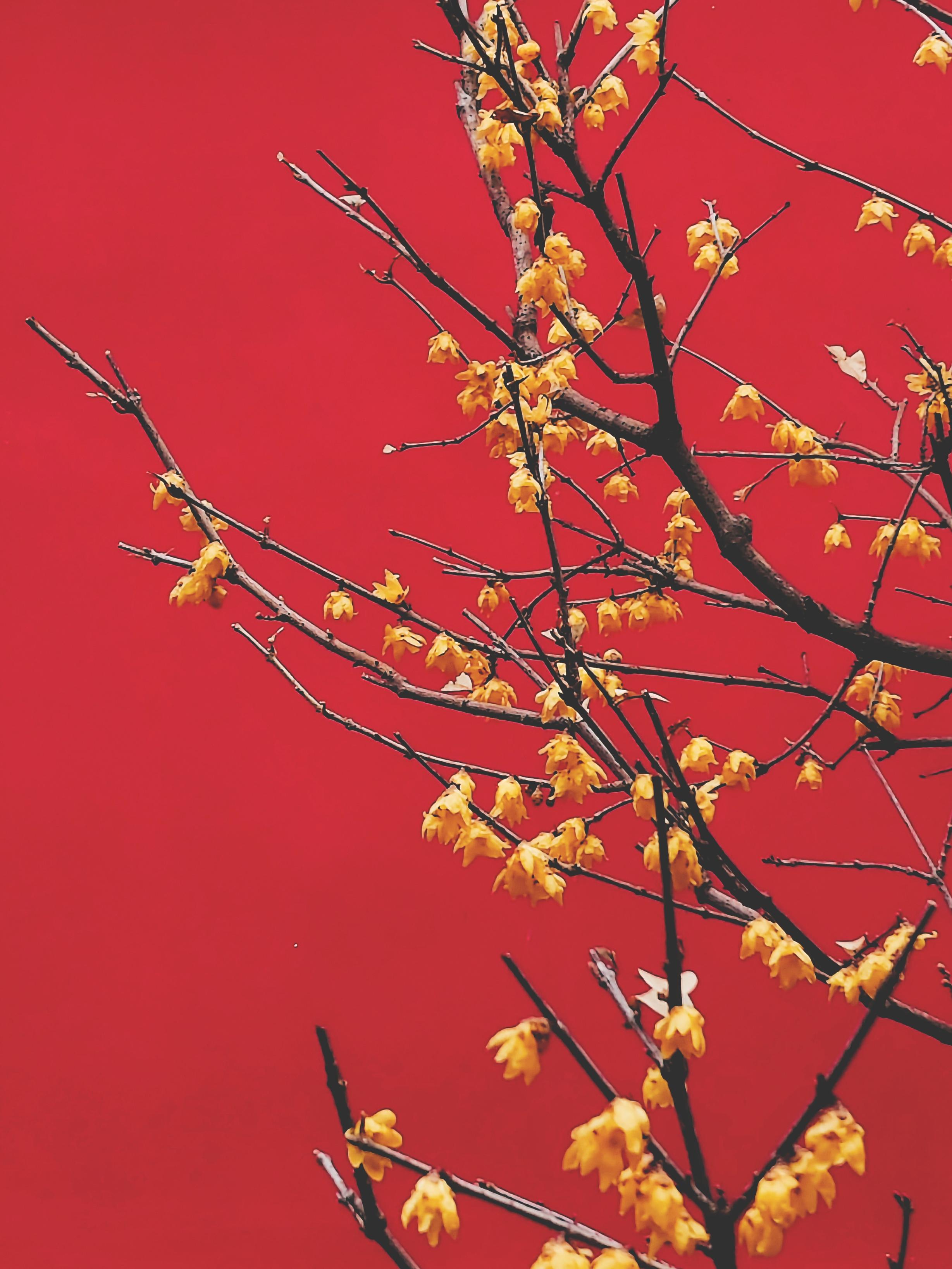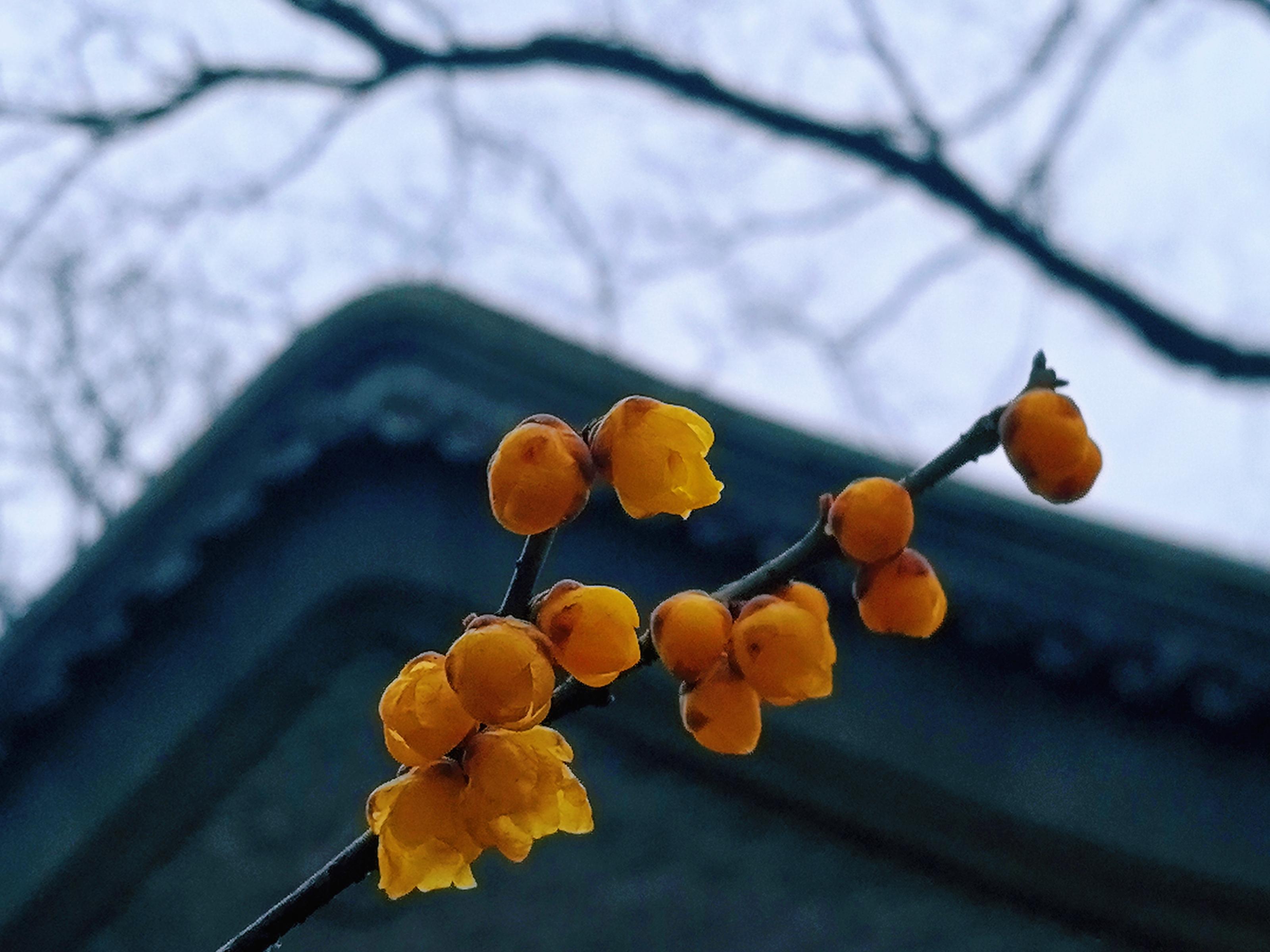 有的胖如蜜蜡小铃铛,裹着寒香;