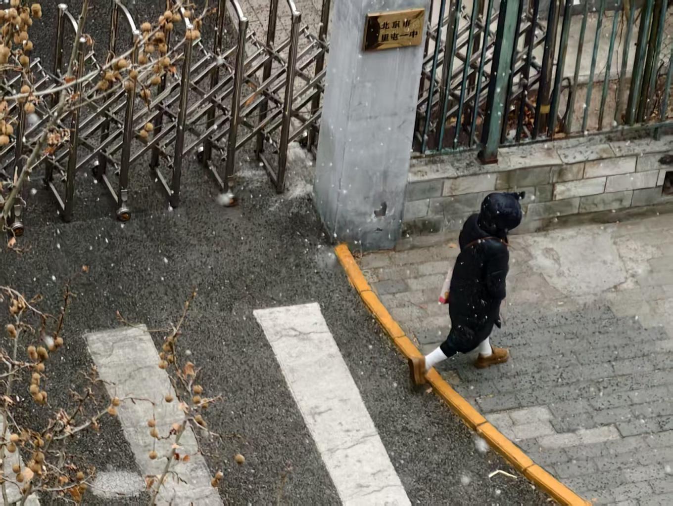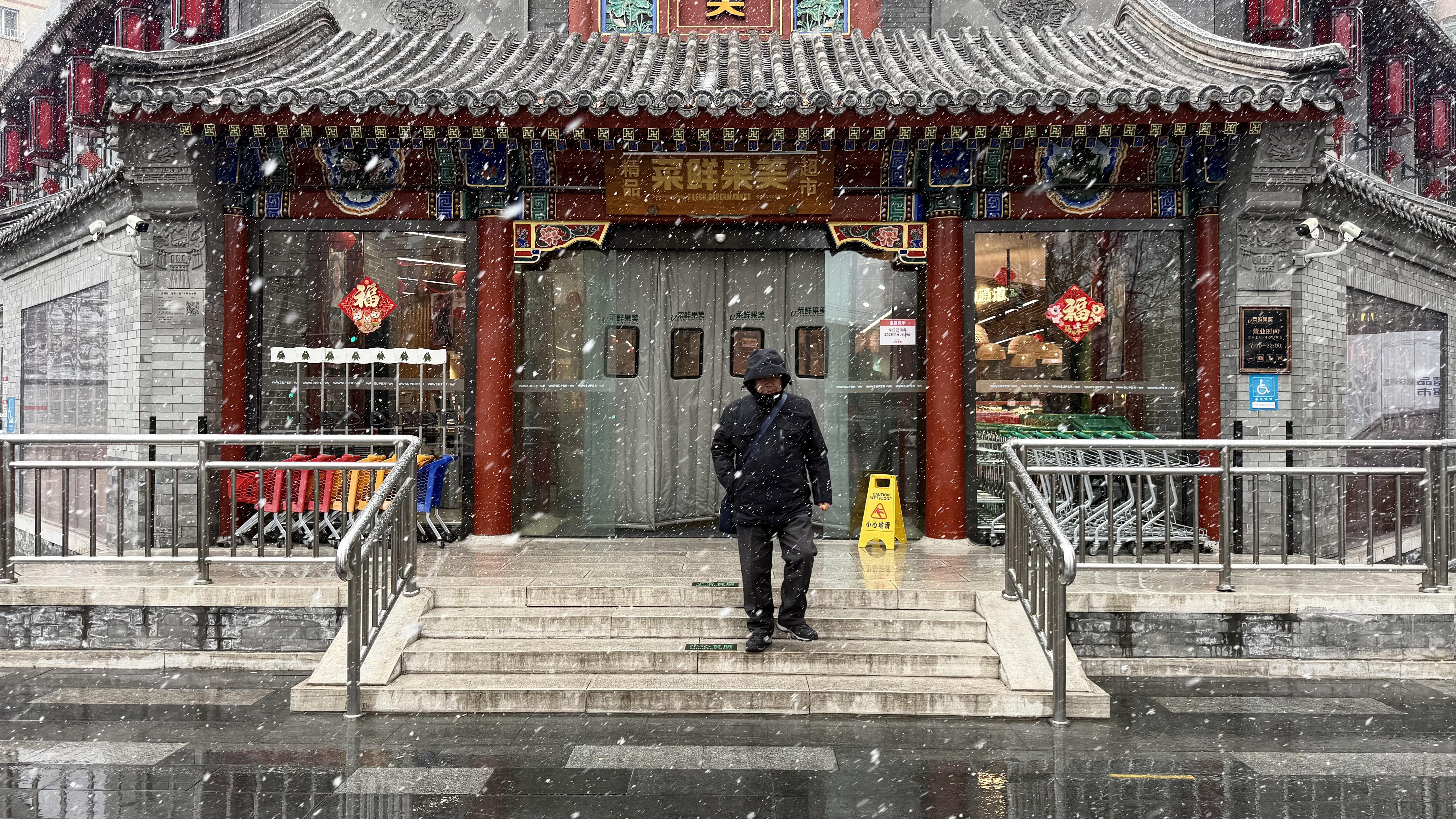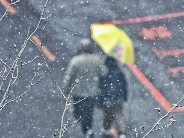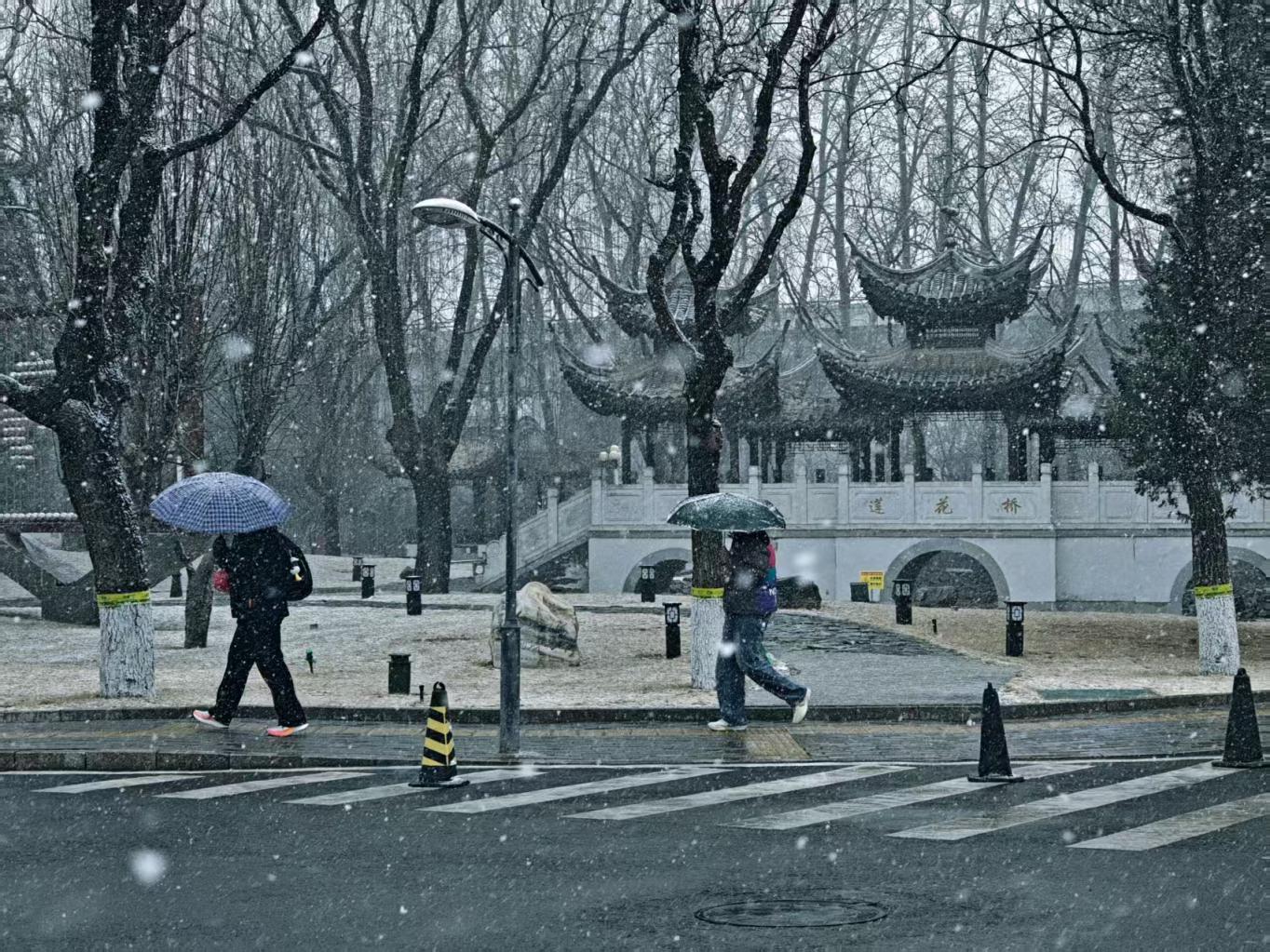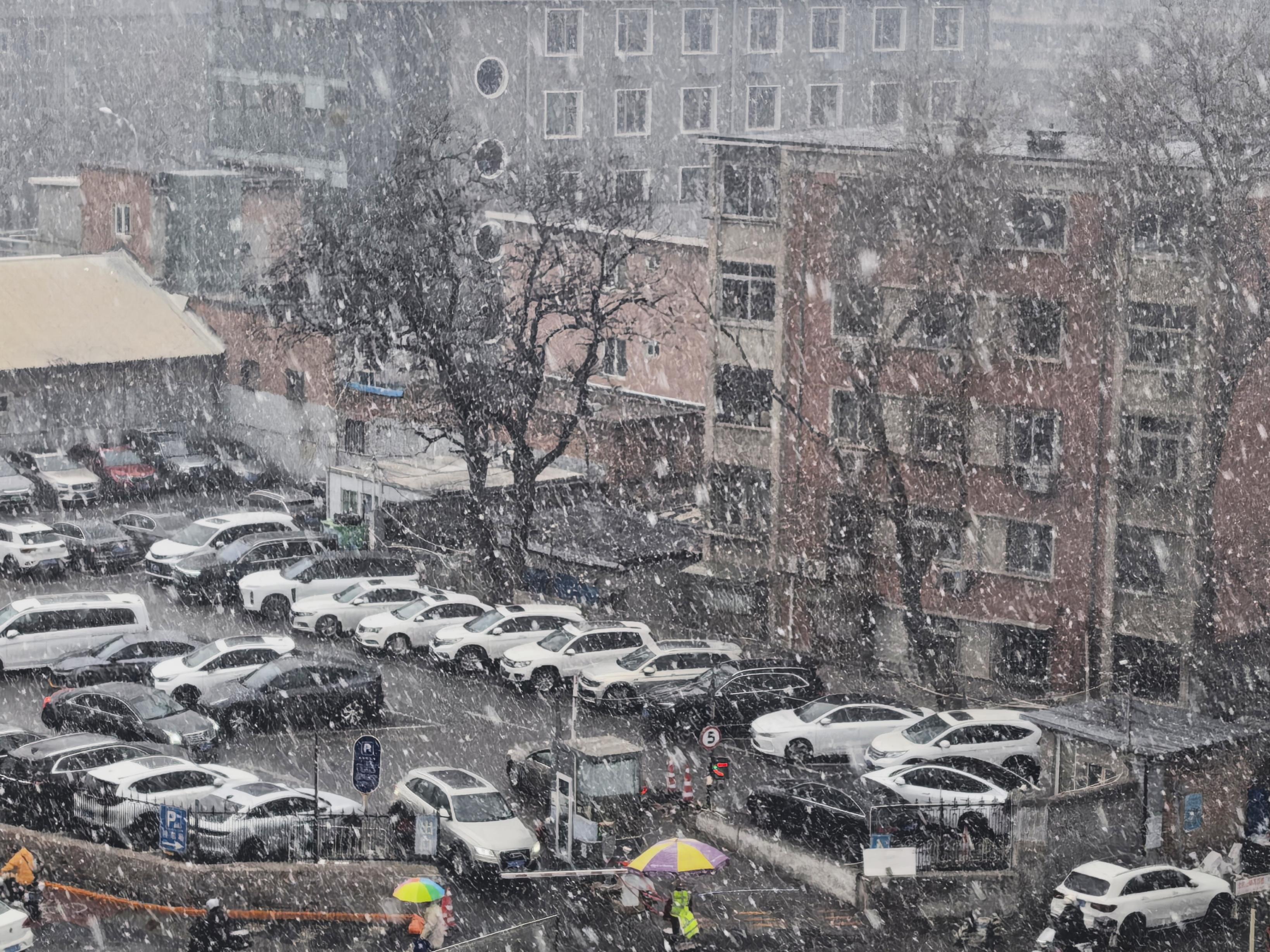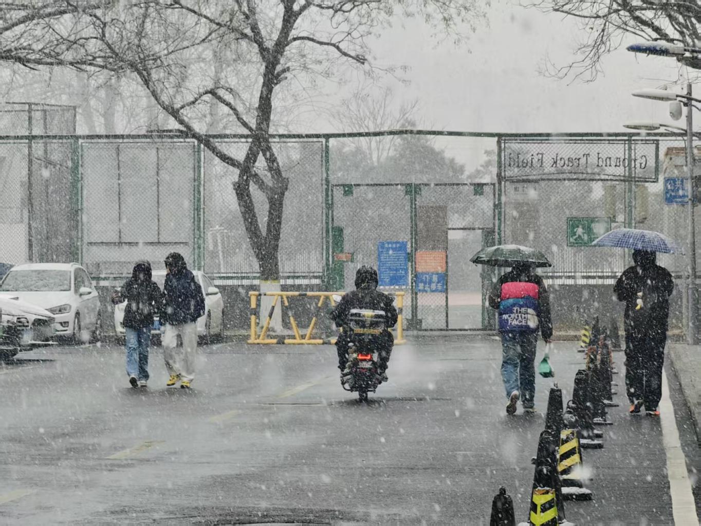 3月4日,北京多地出现明显降雪,行人在雪中撑伞而行。