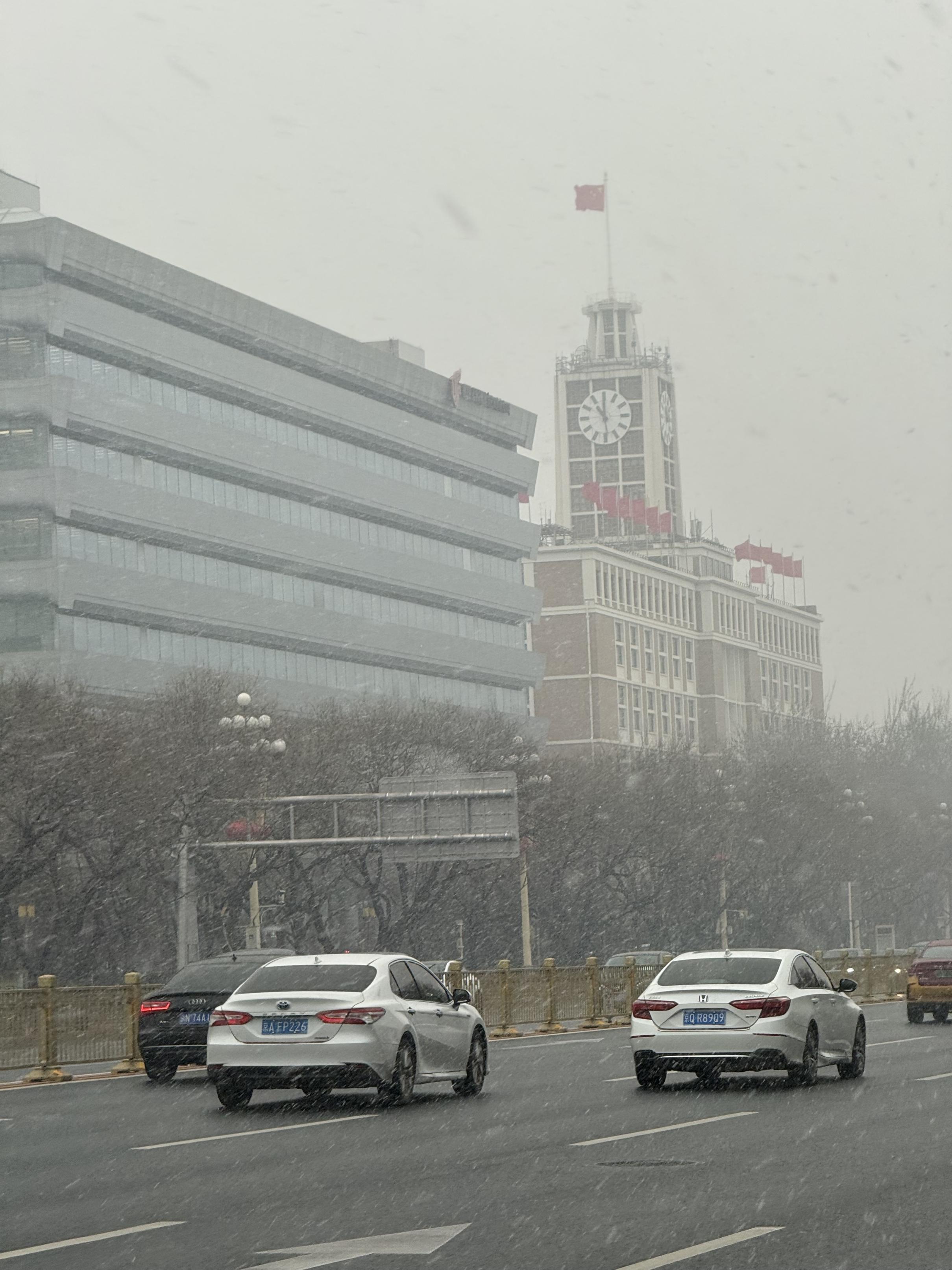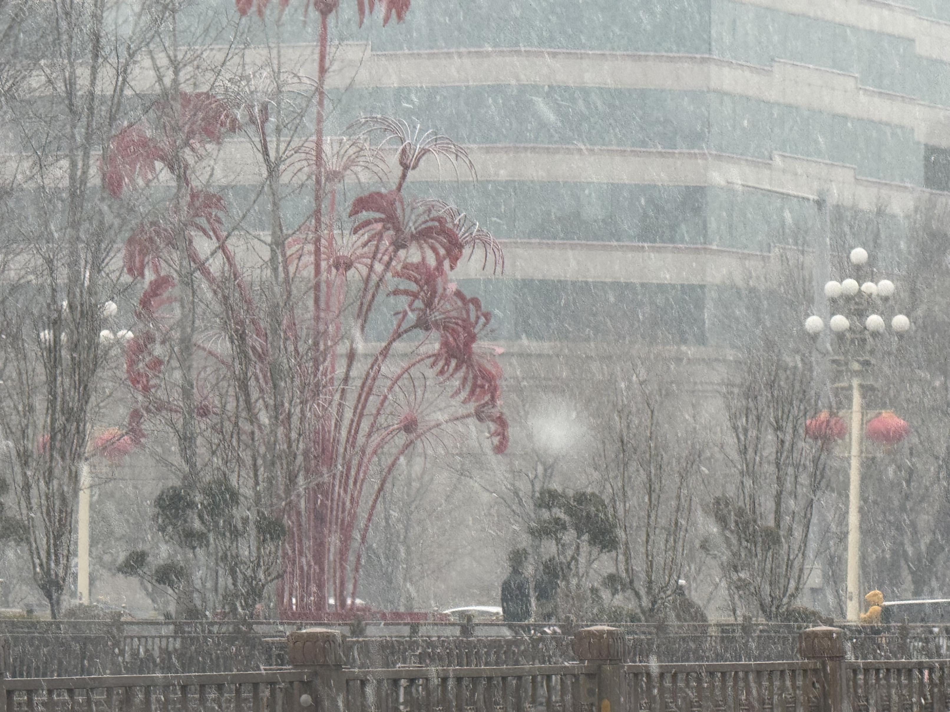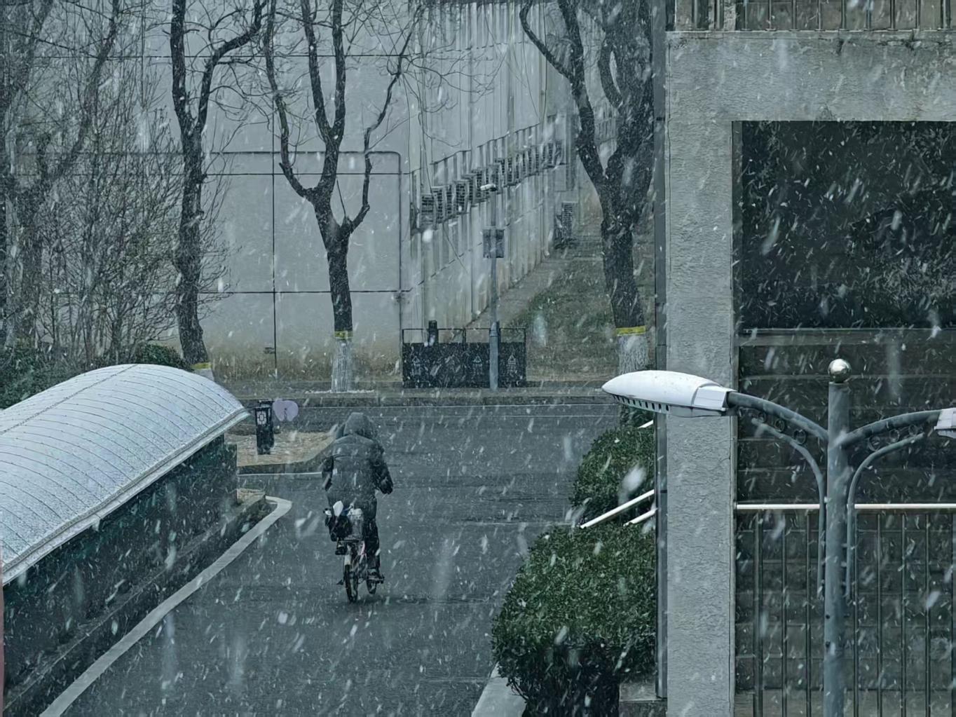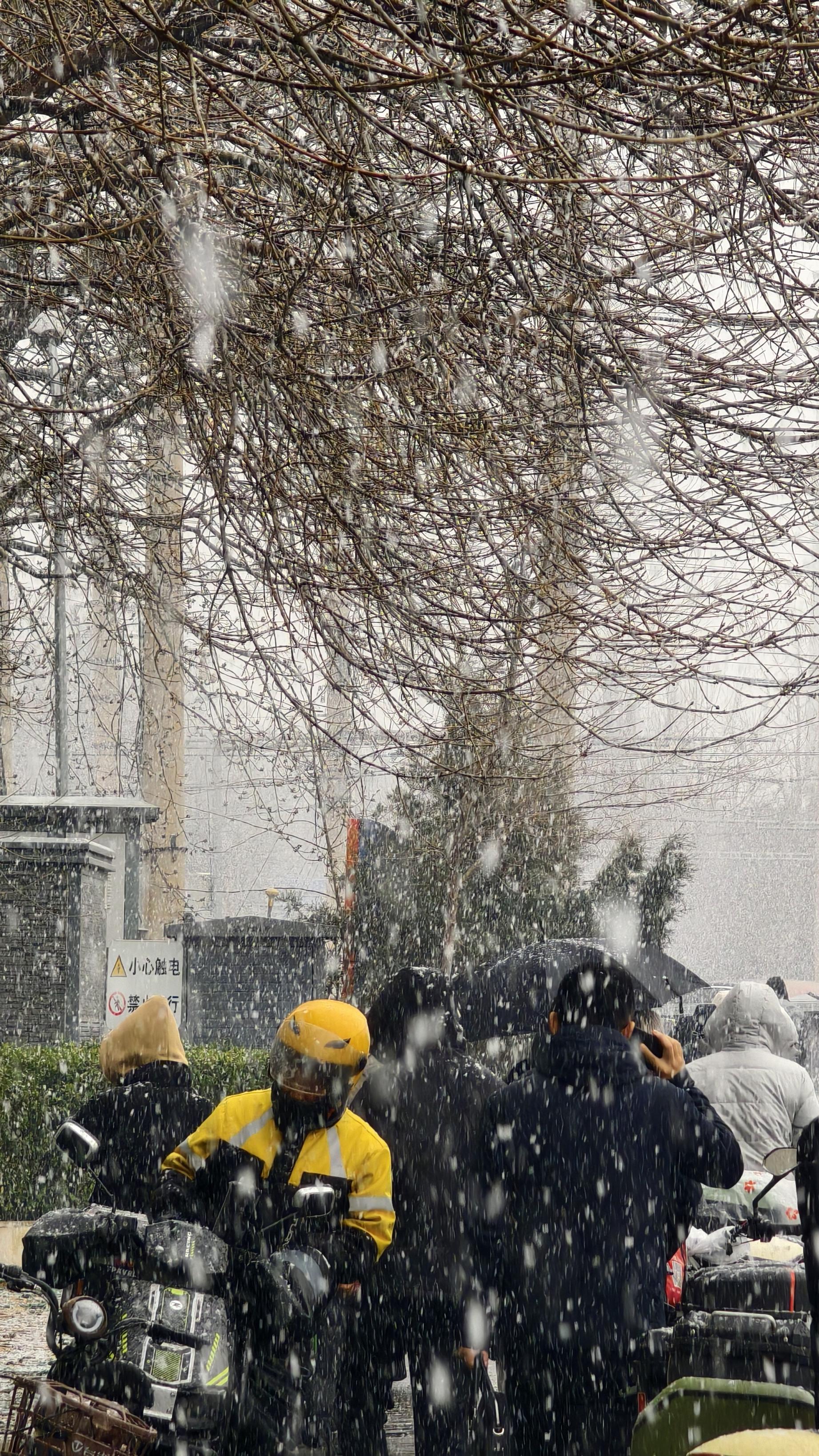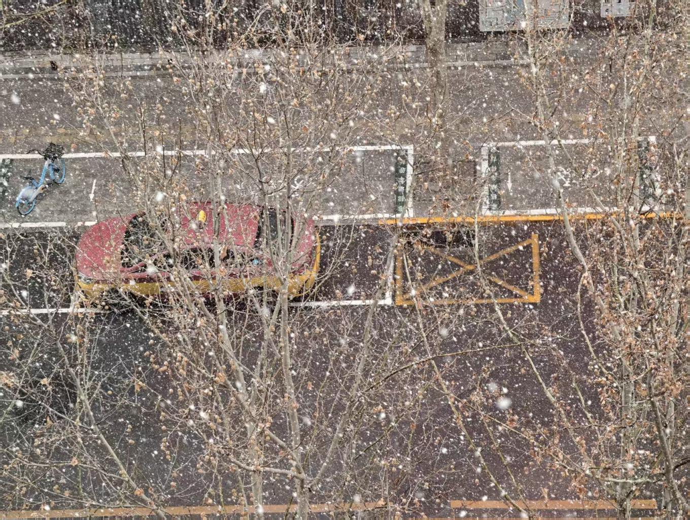 3月4日,北京多地出现明显降雪,行人在雪中撑伞而行。