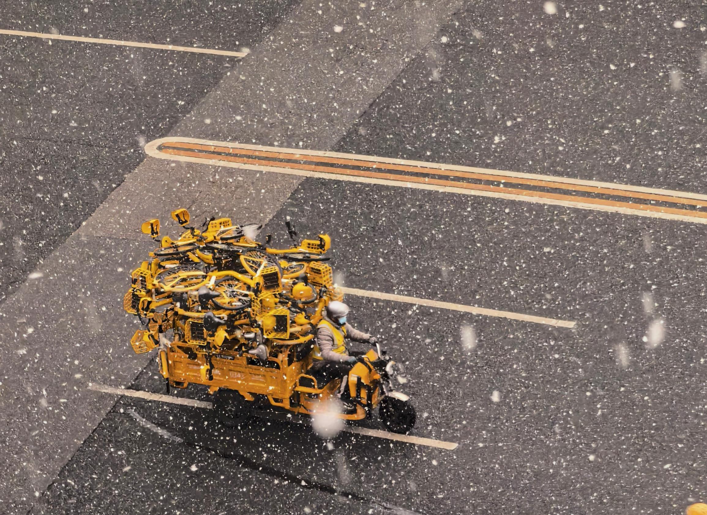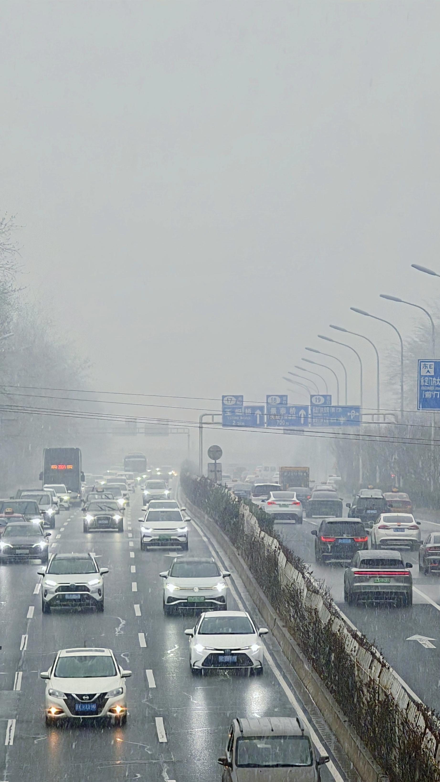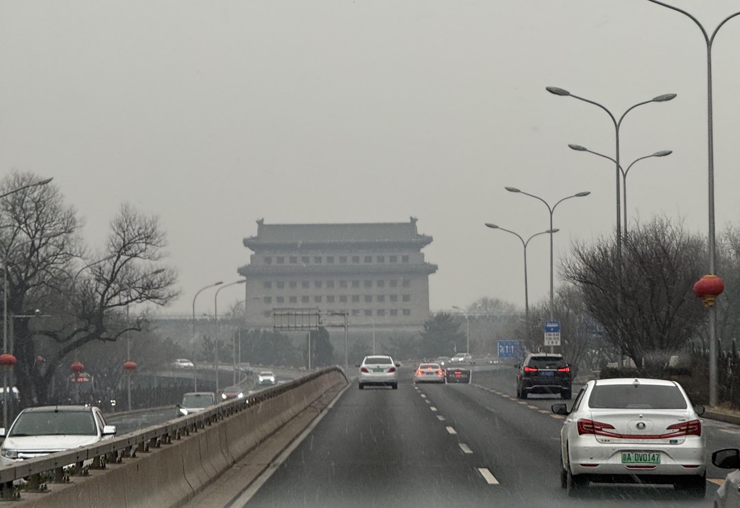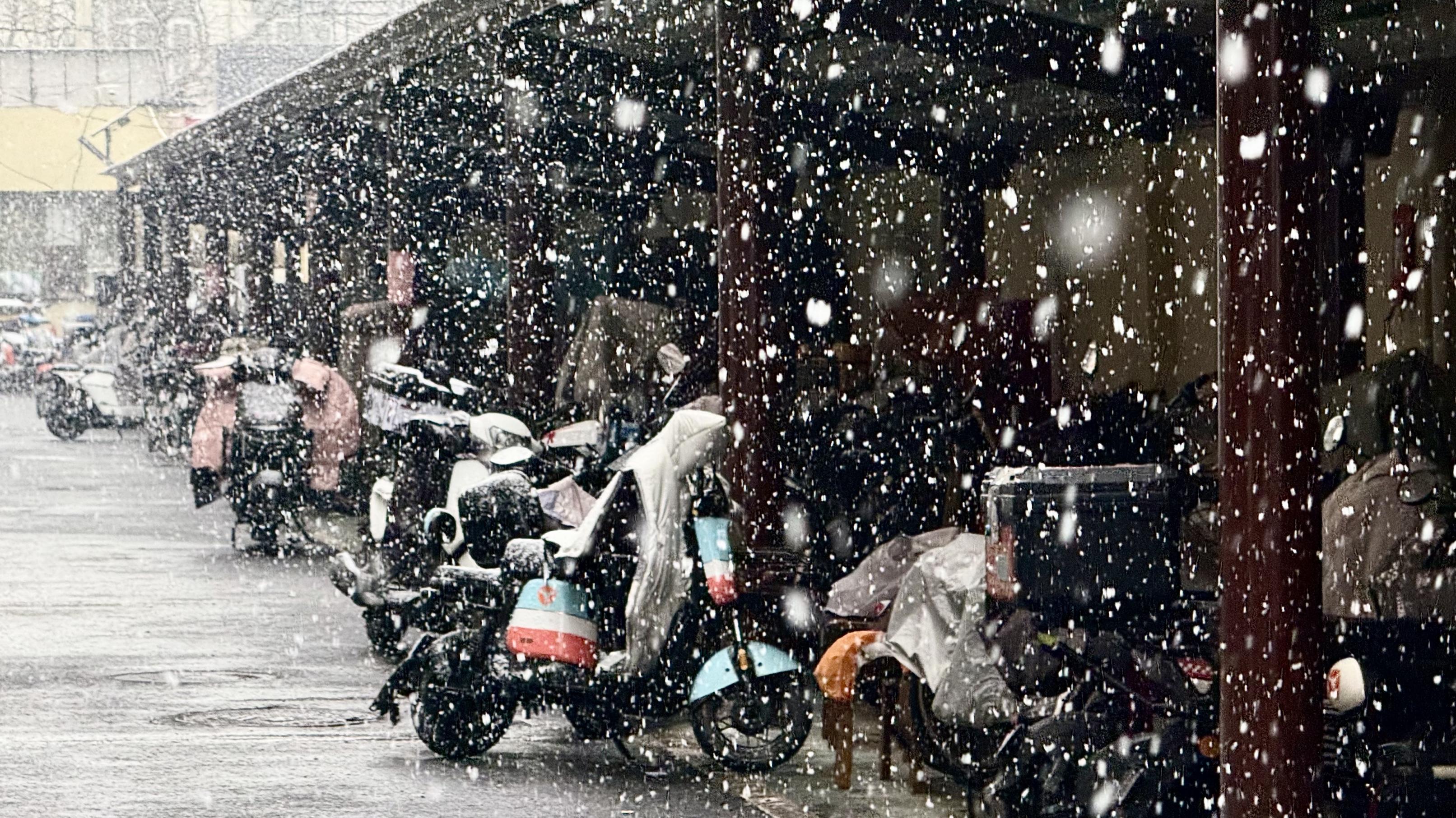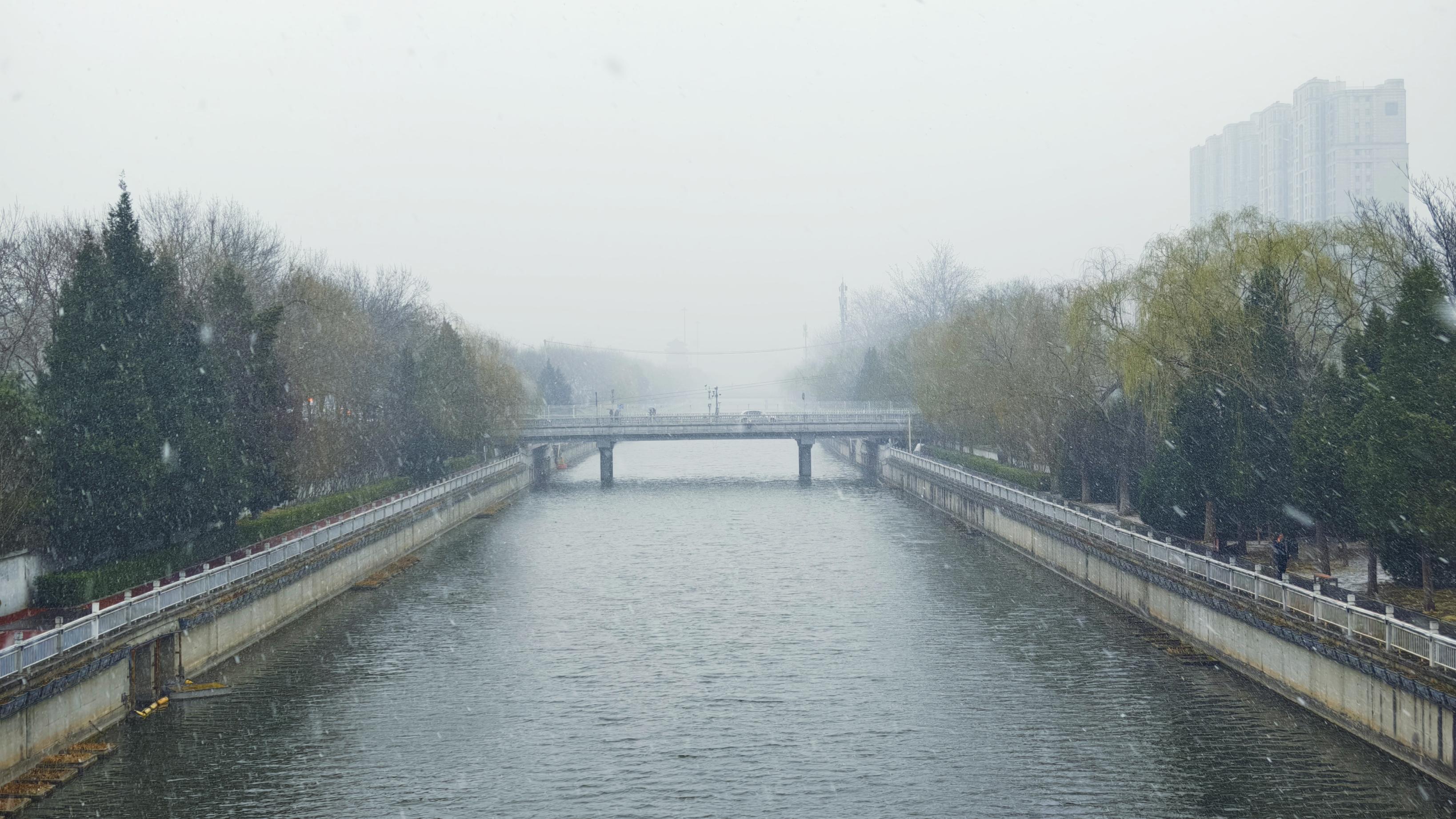 3月4日,北京多地出现明显降雪,行人在雪中撑伞而行。