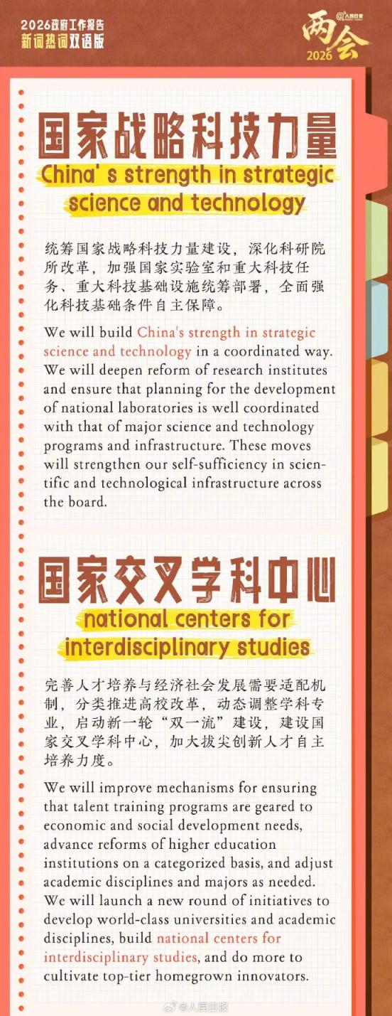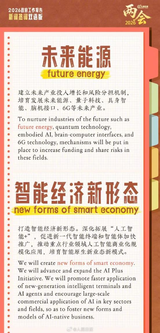 “未来能源”“‘中国服务’品牌”“新兴支柱产业”“世界级城市群”……政府工作报告18个新词热词翻译,一组实用双语学习卡,转发收藏学起来。