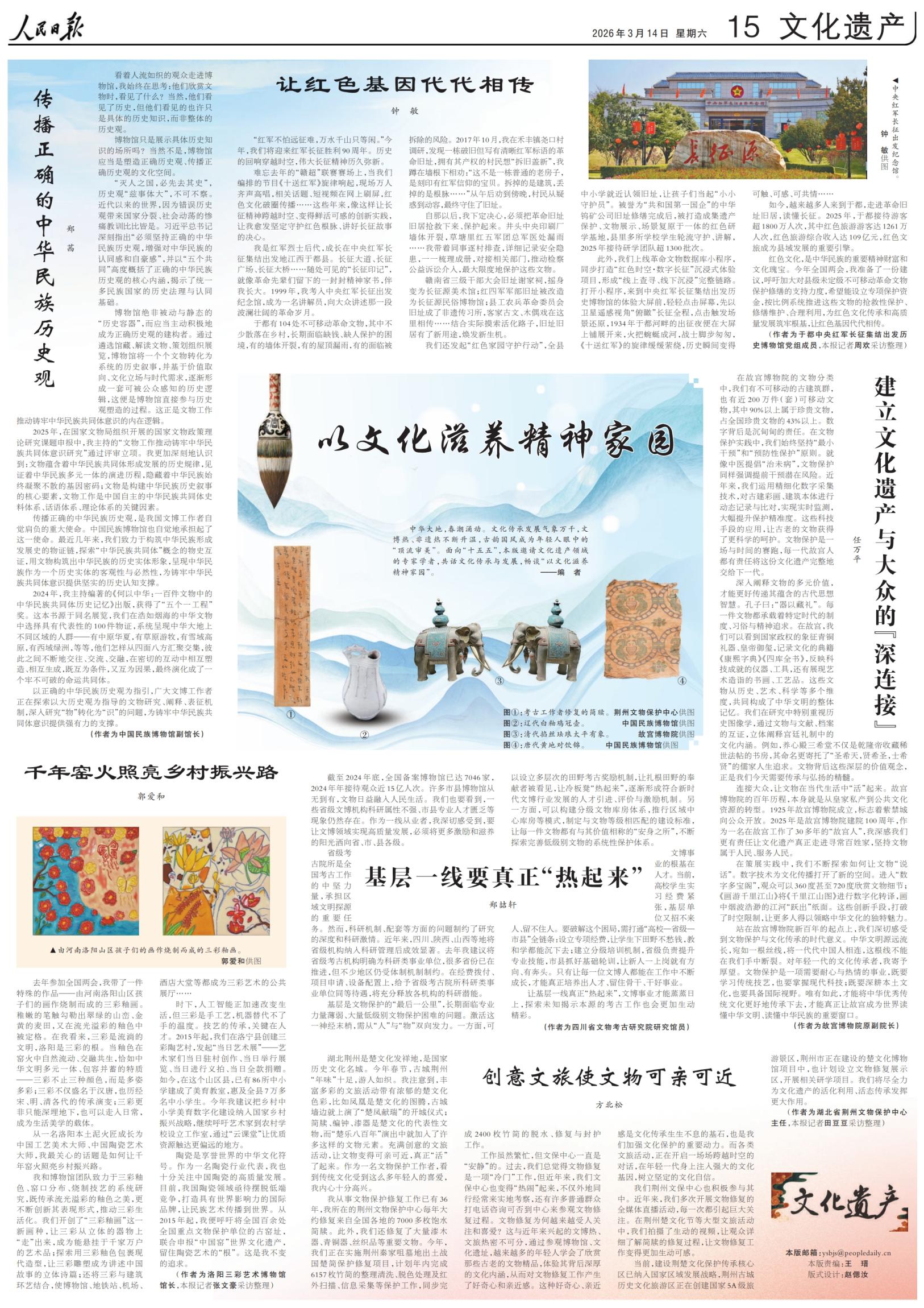 中华大地,春潮涌动。文化传承发展气象万千,文博热、非遗热不断升温,古韵国风成为年轻人眼中的“顶流审美”。面向“十五五”,本版邀请文化遗产领域的专家学者,共话文化传承与发展,畅谈“以文化滋养精神家园”。