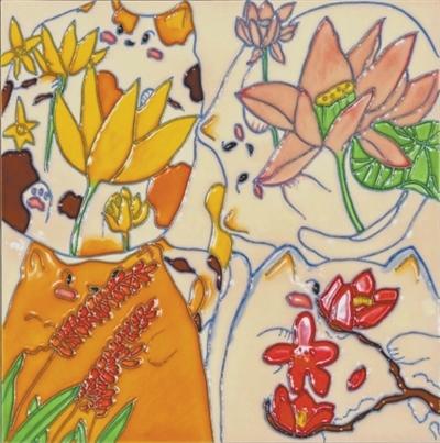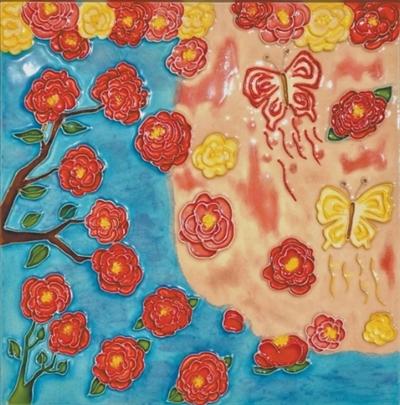 由河南洛阳山区孩子们的画作烧制而成的三彩釉画。郭爱和供图