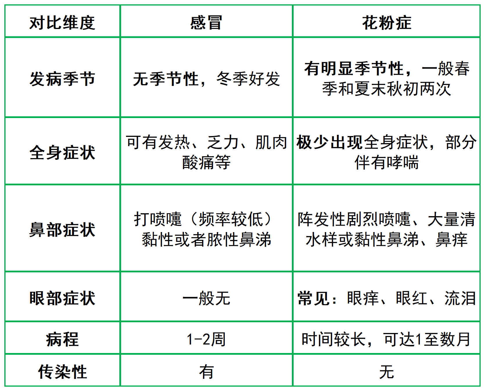 一图分清感冒和过敏