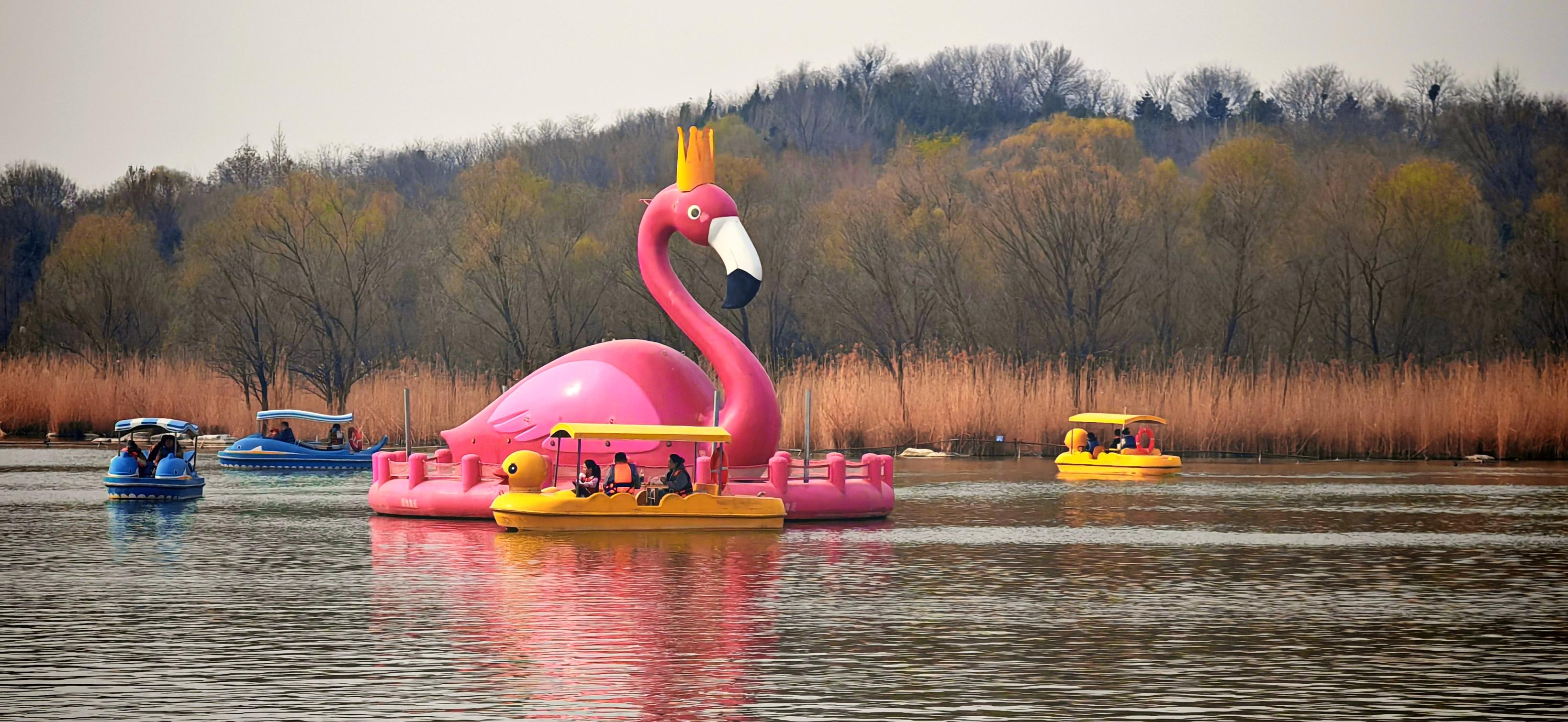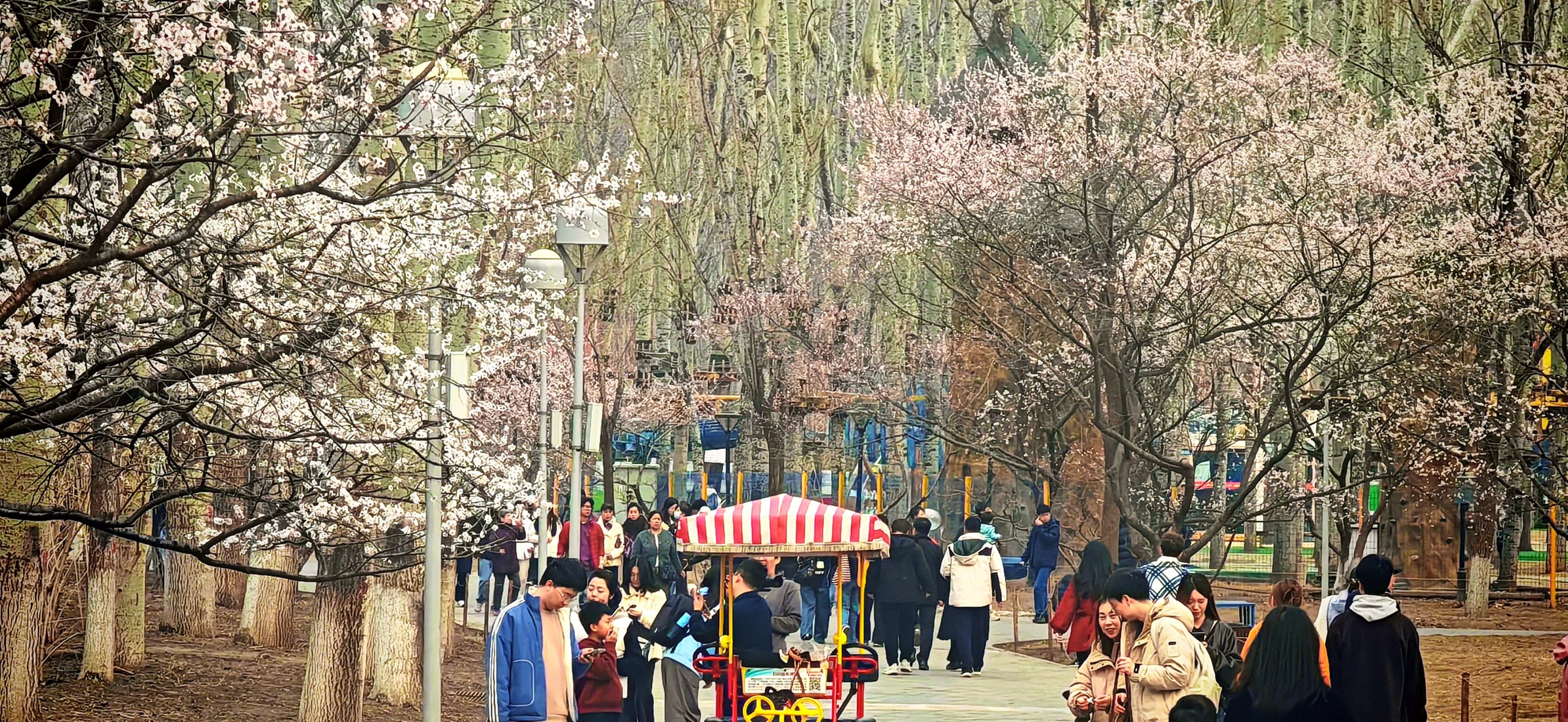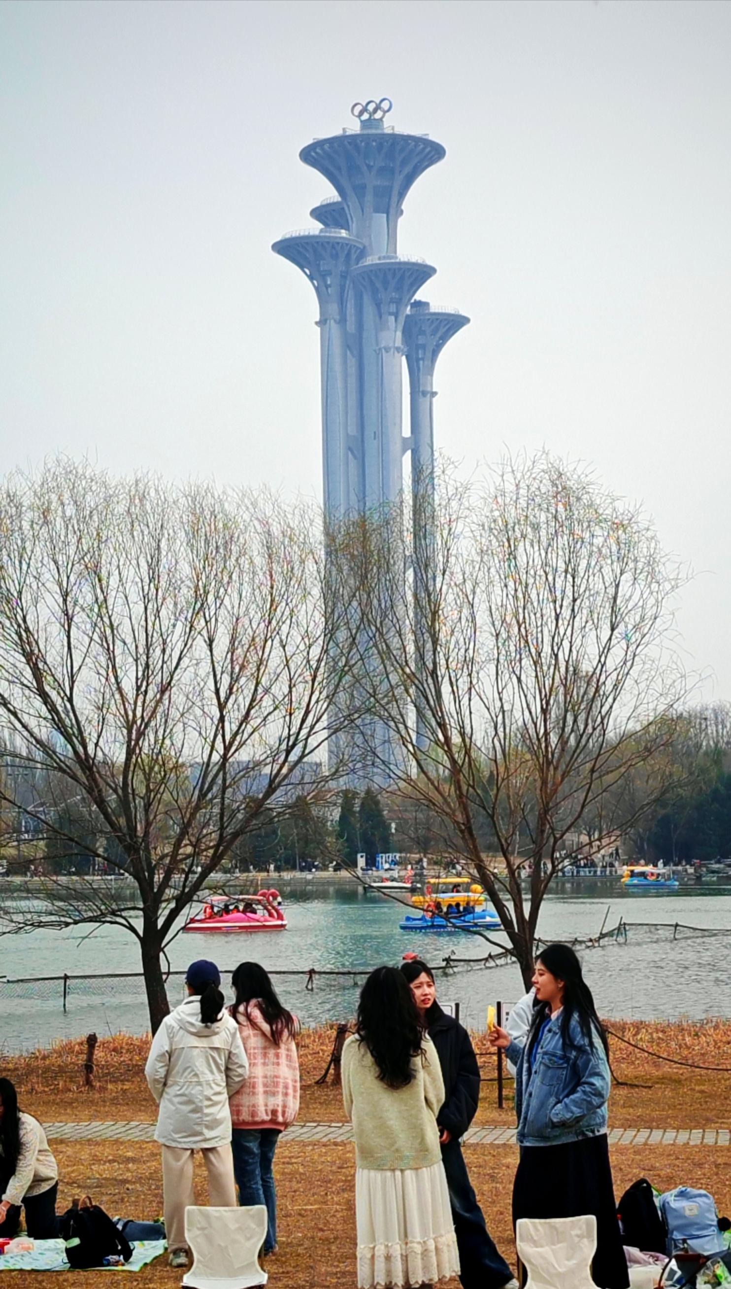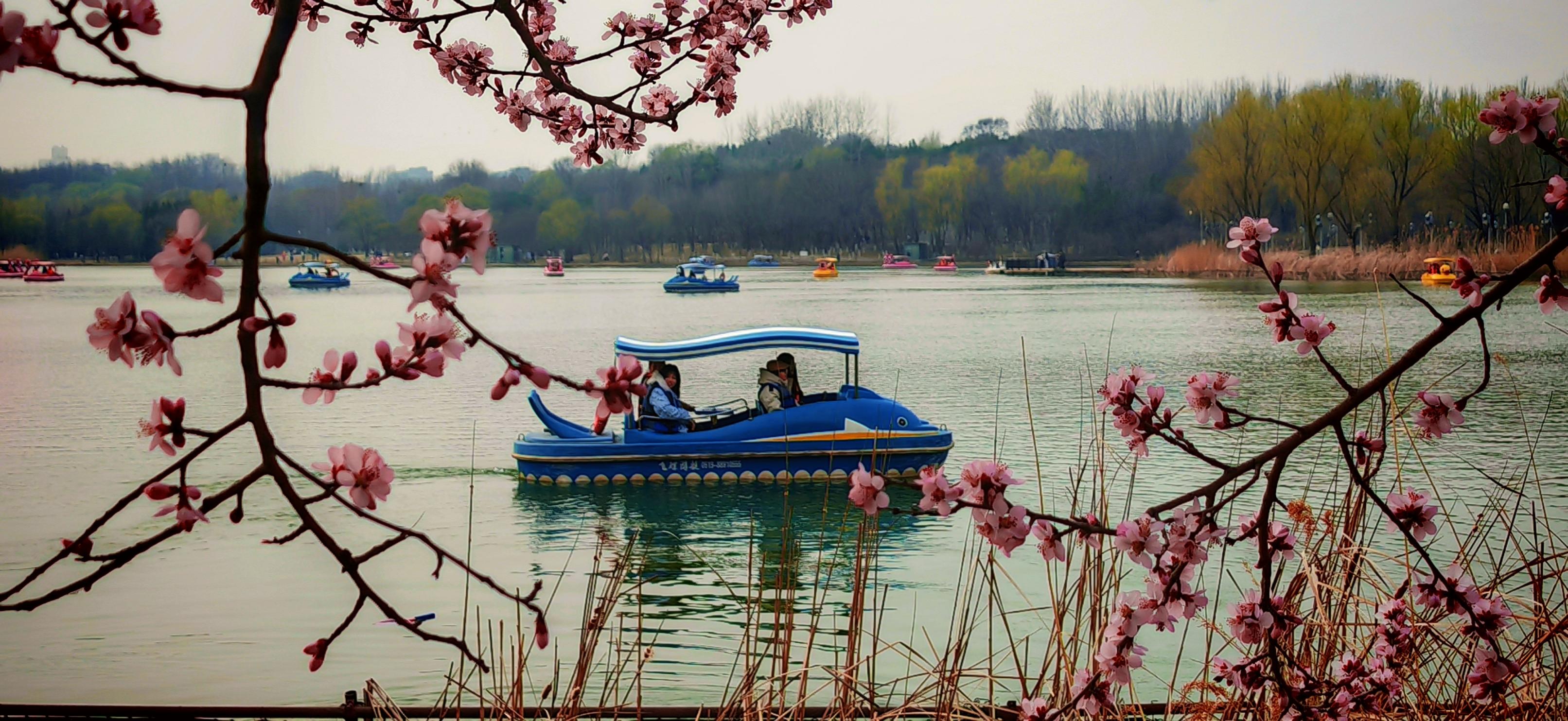 3月21日,北京奥林匹克森林公园,春意盎然,市民或泛舟赏景,或林间漫步,在休闲中感受春天的气息,构成了一幅动静相宜的都市休闲画卷。