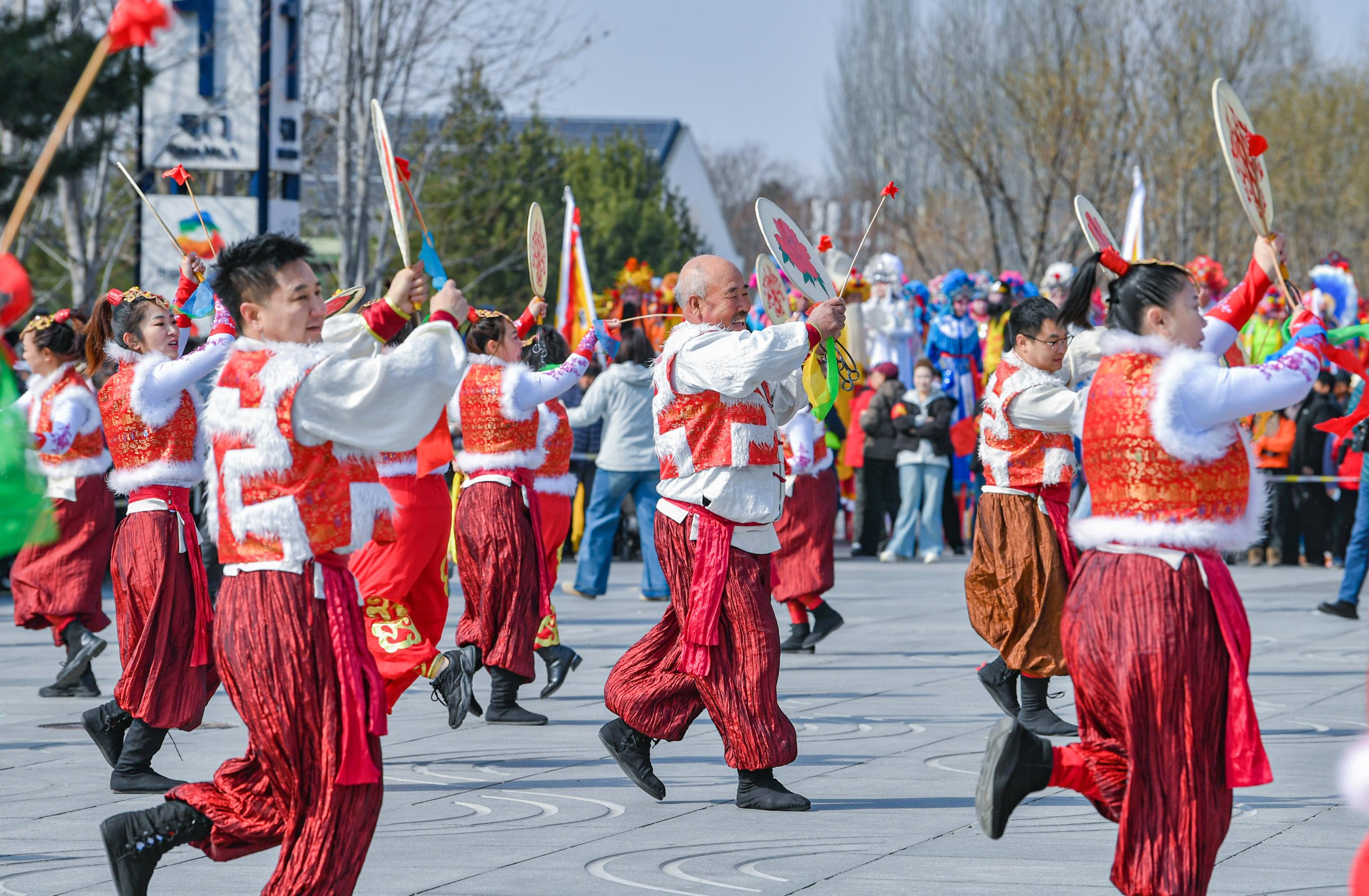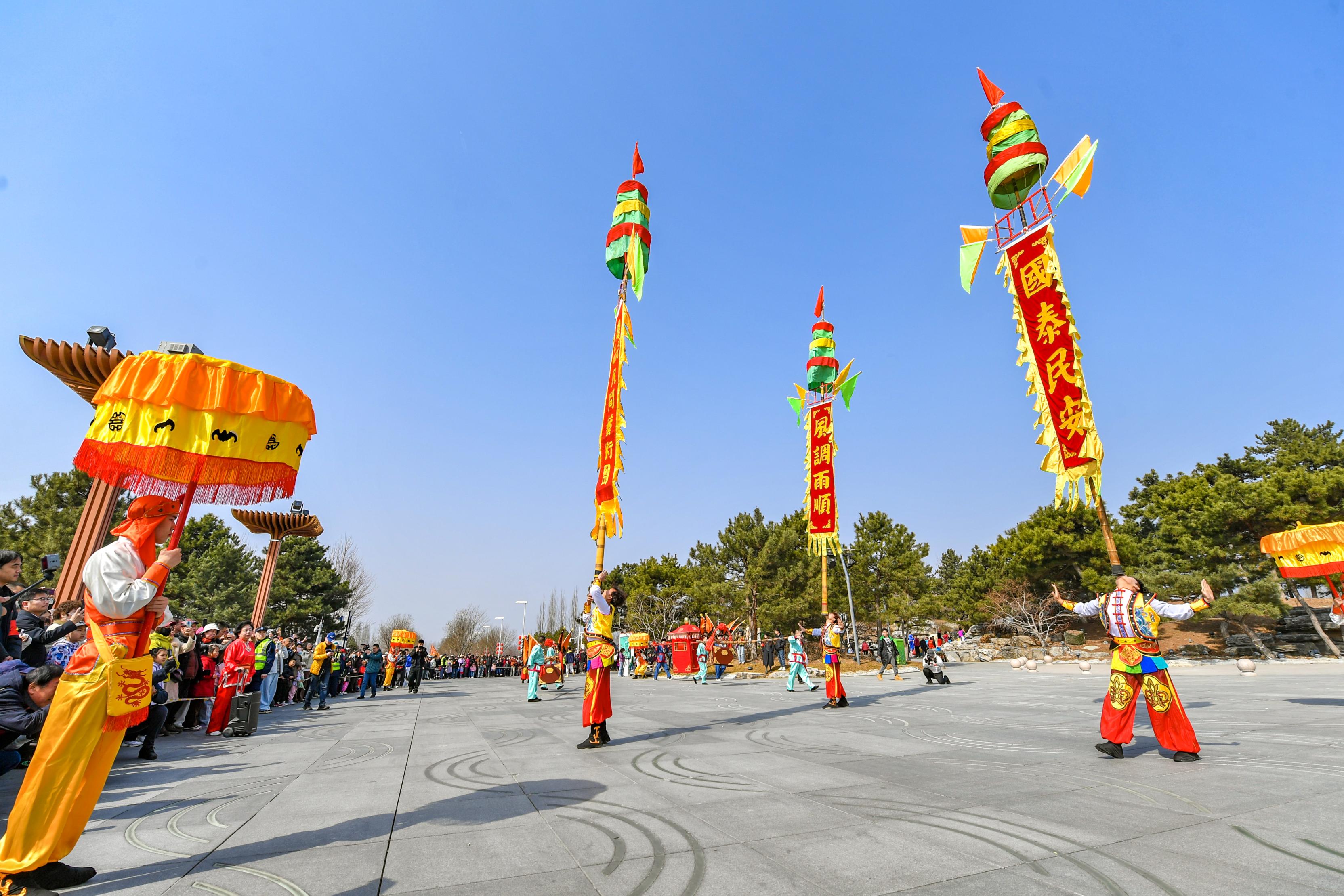 3月21日,2026年延庆区“龙抬头兴妫川盛景 花会情联京津冀蒙”民俗花会交流展演活动在北京世园国际旅游度假区火热启幕。来自京津冀蒙的10支花会队伍齐聚一堂,国家级与市区级非遗同台竞演,行进式与定点式展演交织,锣鼓喧天、欢歌笑语中,市民游客喜迎龙抬头好时节。