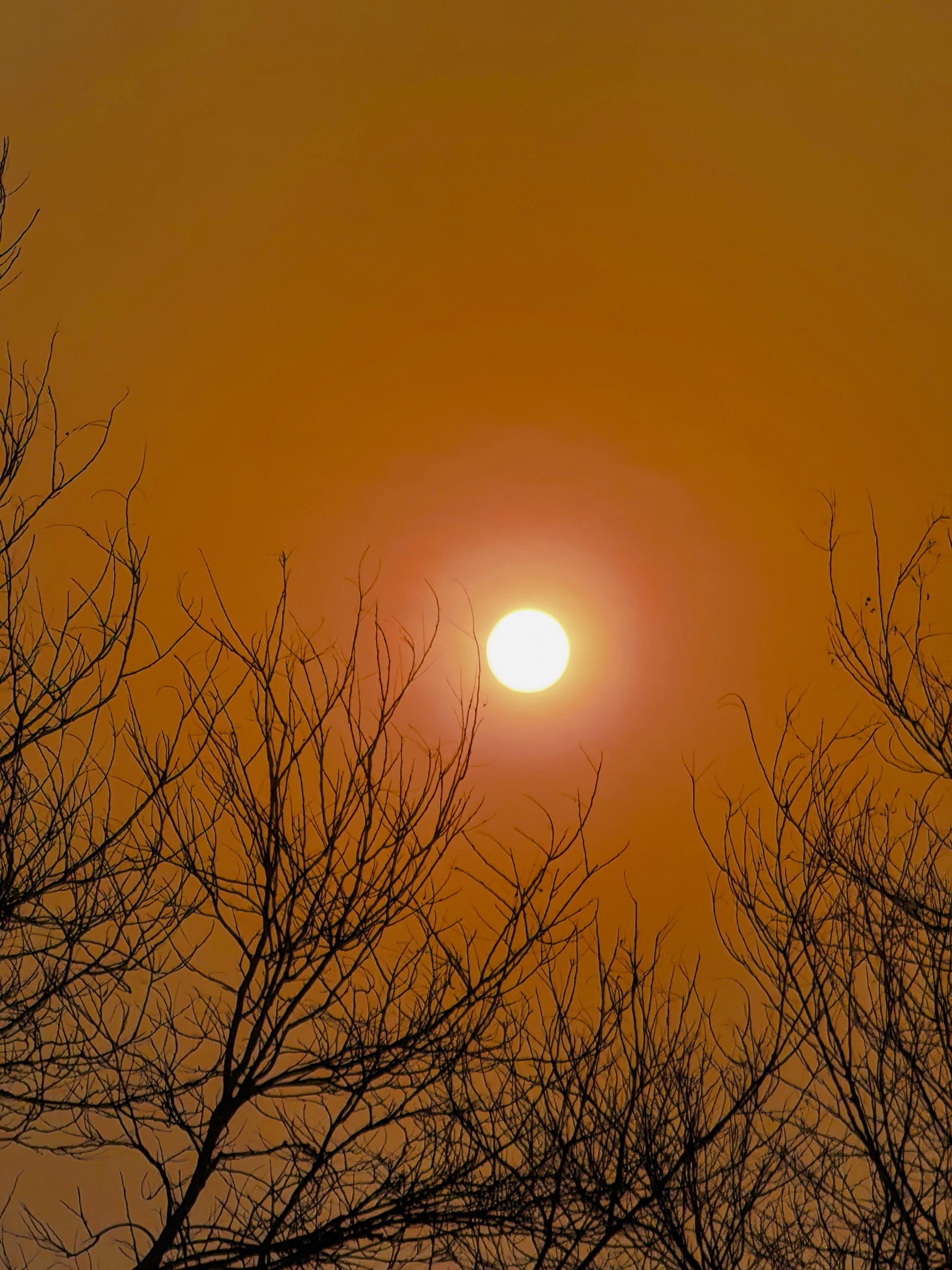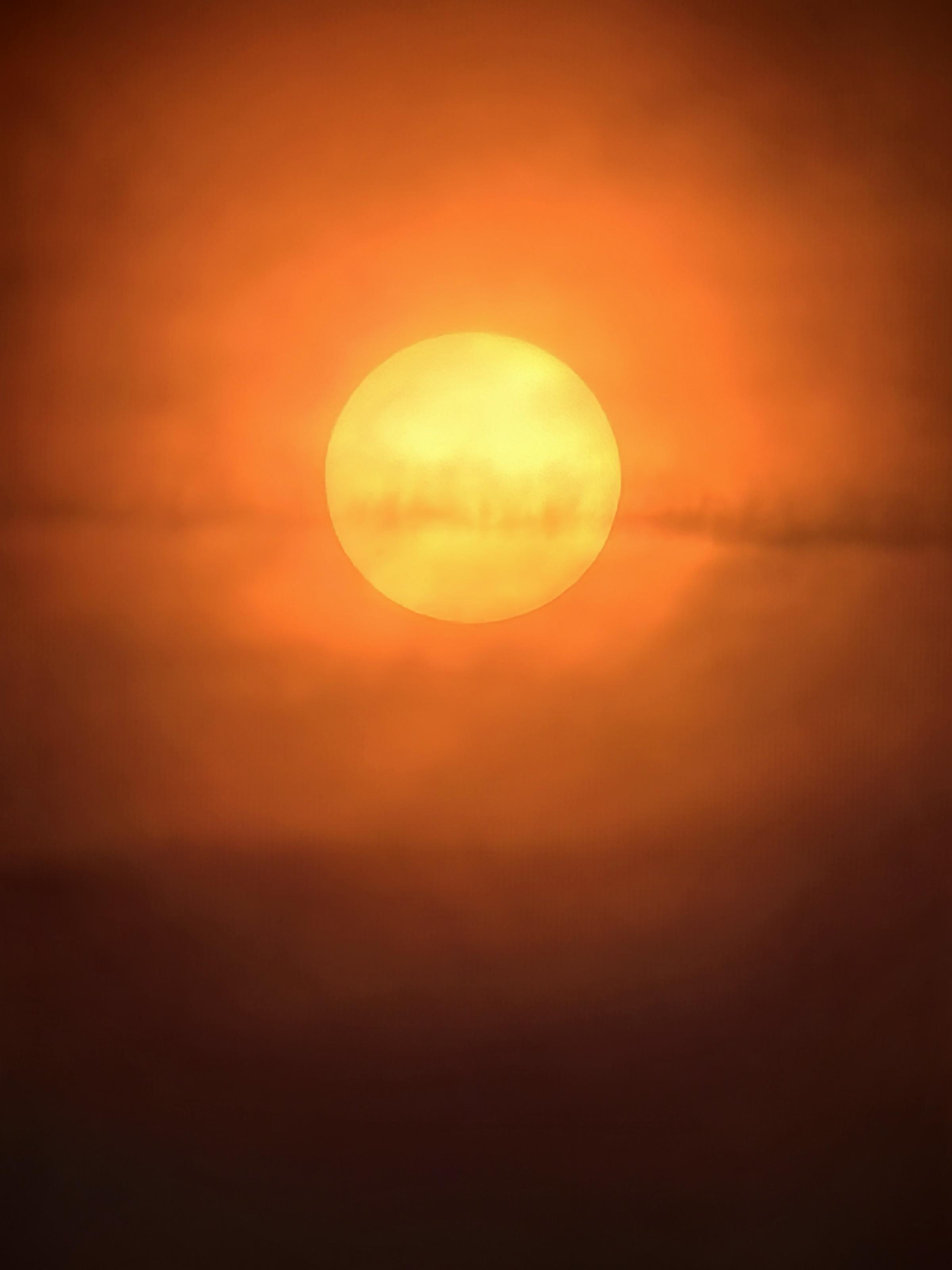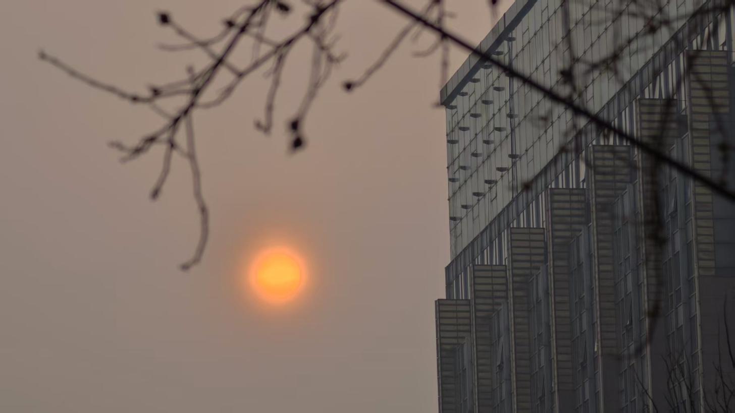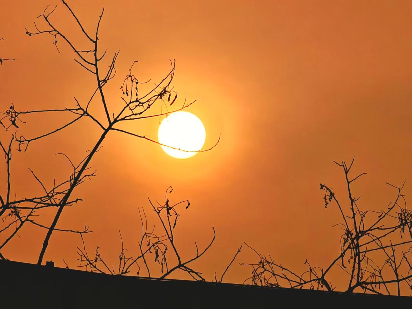 3月24日清晨,多云,一轮红日缓缓升起,带给人们别样的朦胧感美景。