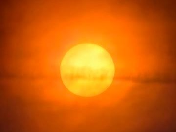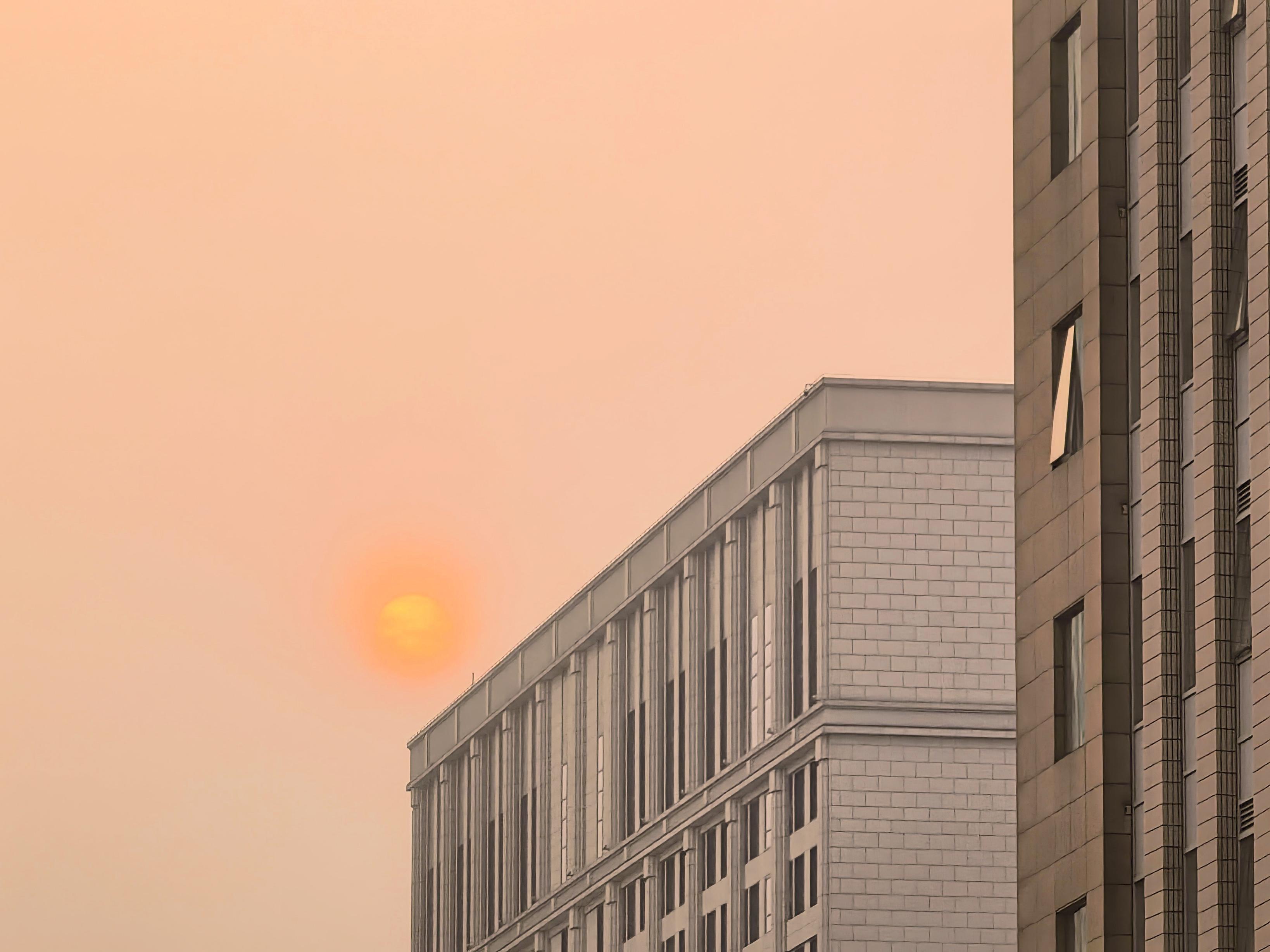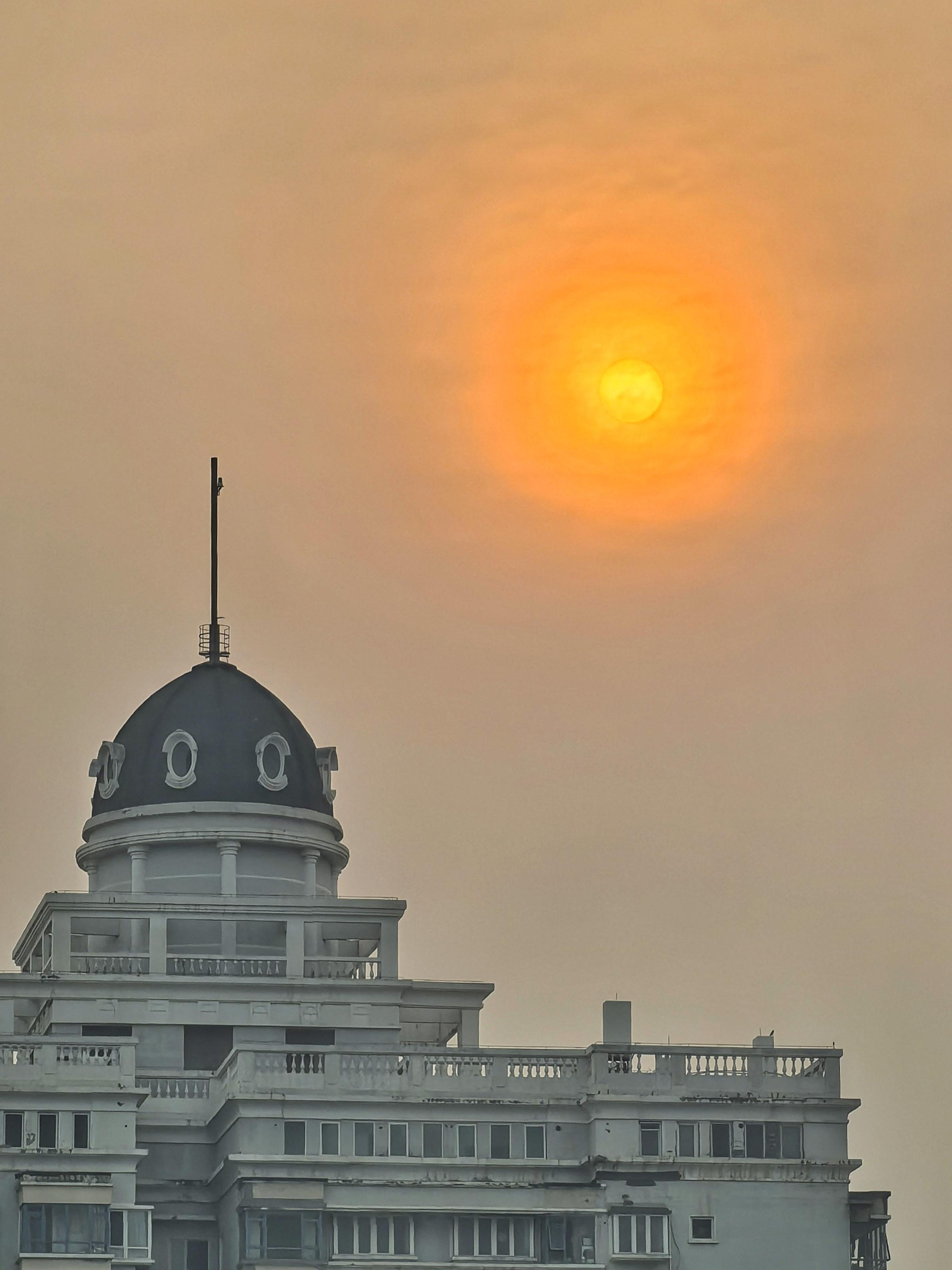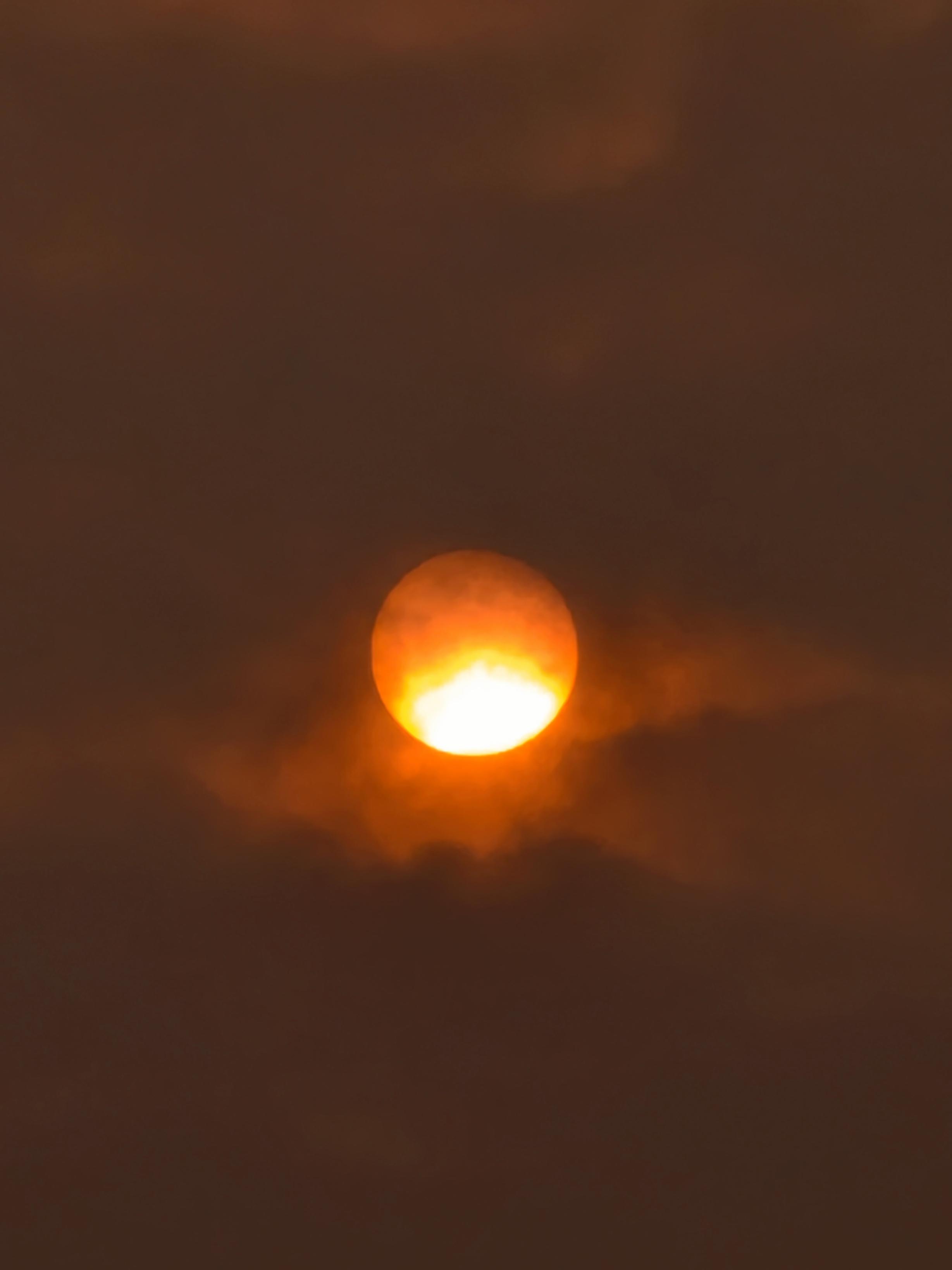 3月24日清晨,多云,一轮红日缓缓升起,带给人们别样的朦胧感美景。