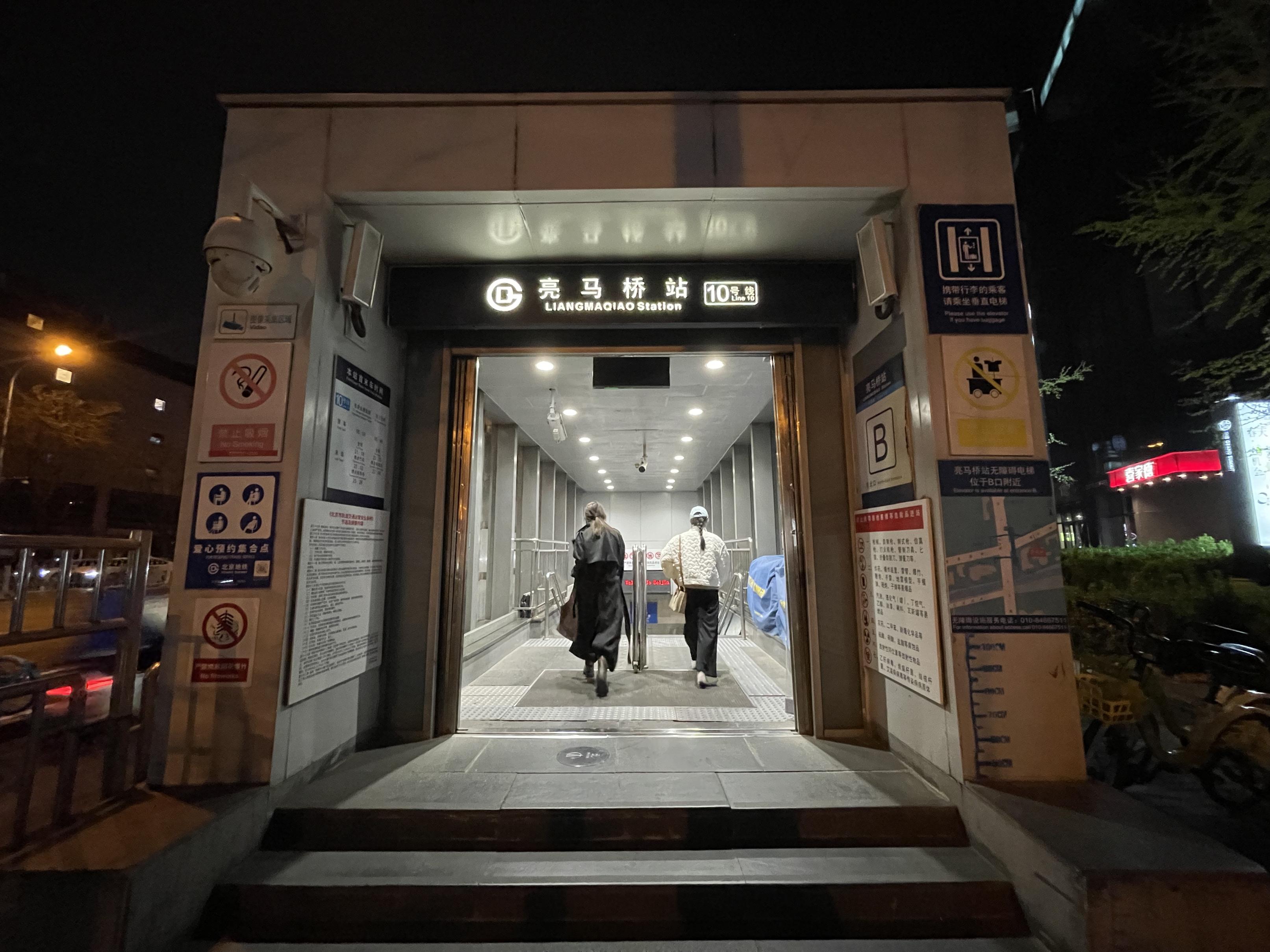 在部分站点,即便乘客看到了无障碍电梯提示,也未必能顺利找见。10号线亮马桥站横跨东三环燕莎桥下,设有四个出入口:B口只有步行梯、无扶梯,A、C、D口则为单向上行扶梯,进站仍需步行下楼。虽然站口提示无障碍电梯在B口附近,但记者实地探访发现,所谓“附近”实则与地铁口相距甚远,且呈直角分布,需从B口向西走到路口再向北转弯,步行近百米才能看到。由于电梯位置并不好找,有网友几经寻找发现后,专门在网上分享了攻略。