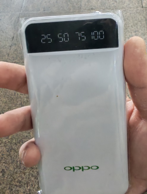 “这是什么牌子?”“OPPO,锂电池的。”“能上飞机吗?”“随便上,带‘3C’认证。”一番交谈后,记者花30元从一名游商手中,购买了一款带有“OPPO”字样的白色充电宝。这款充电宝标注容量为16000毫安,仅用一层薄薄的透明塑料纸包装。仔细查验充电宝,做工比较粗糙,开关键有些歪斜且存在较大间隙。按下开关键,充电接口处可看到指示灯亮起。付完钱后,女子顺手塞给记者一条约15厘米的数据线,叮嘱“最好用你自己的手机线充电,更快。”