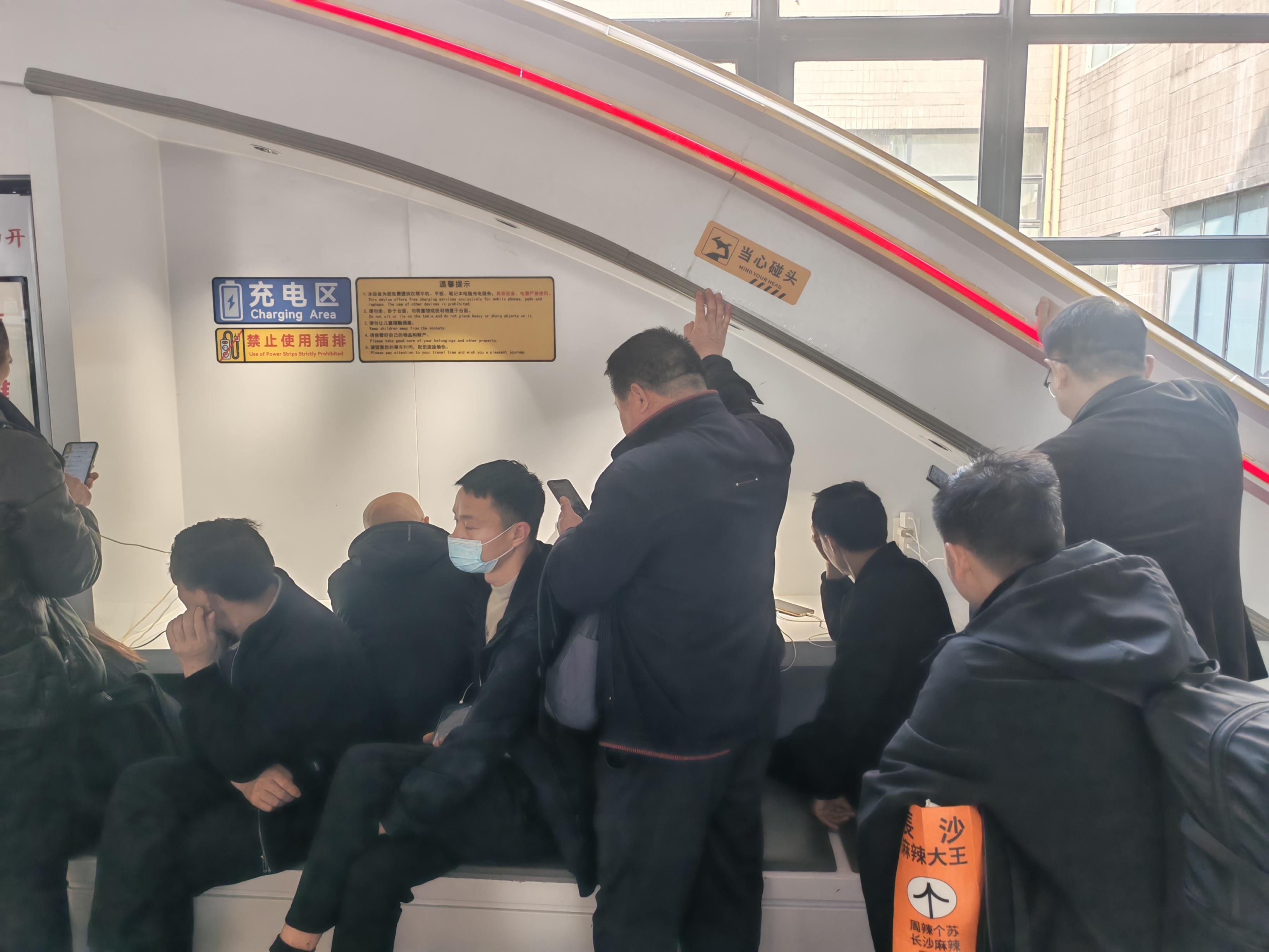 这些推销人员,没有佩戴任何证件,衣着装扮与普通旅客没有区别。他们每走完一个候车室,要么就在候车室外的通道角落处蹲下休息,要么就直接去别的候车室继续推销,活动区域主要集中于第4、第5等几个候车室。这几个候车室内,“Z”字头、“K”字头、“T”字头列车车次较多。这些车次路途普遍偏远、旅客手机电量续航可能不足,用到充电宝的需求相对更大。