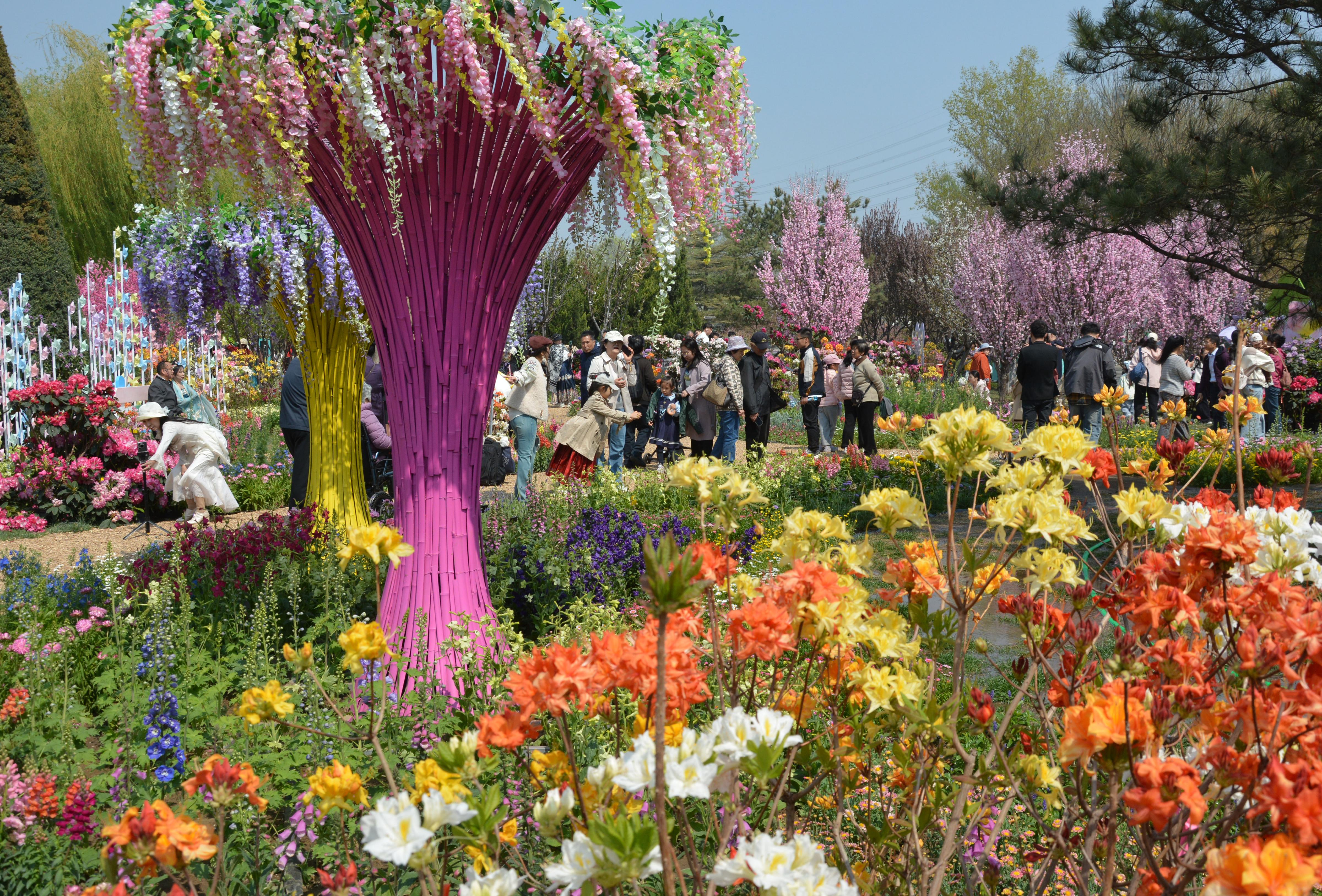 花海搭配二十余种高饱和度花卉,层次错落、色彩绚烂。园区设置多处网红打卡点位,景致如画,成为市民假日出游、赏花取景的好去处。