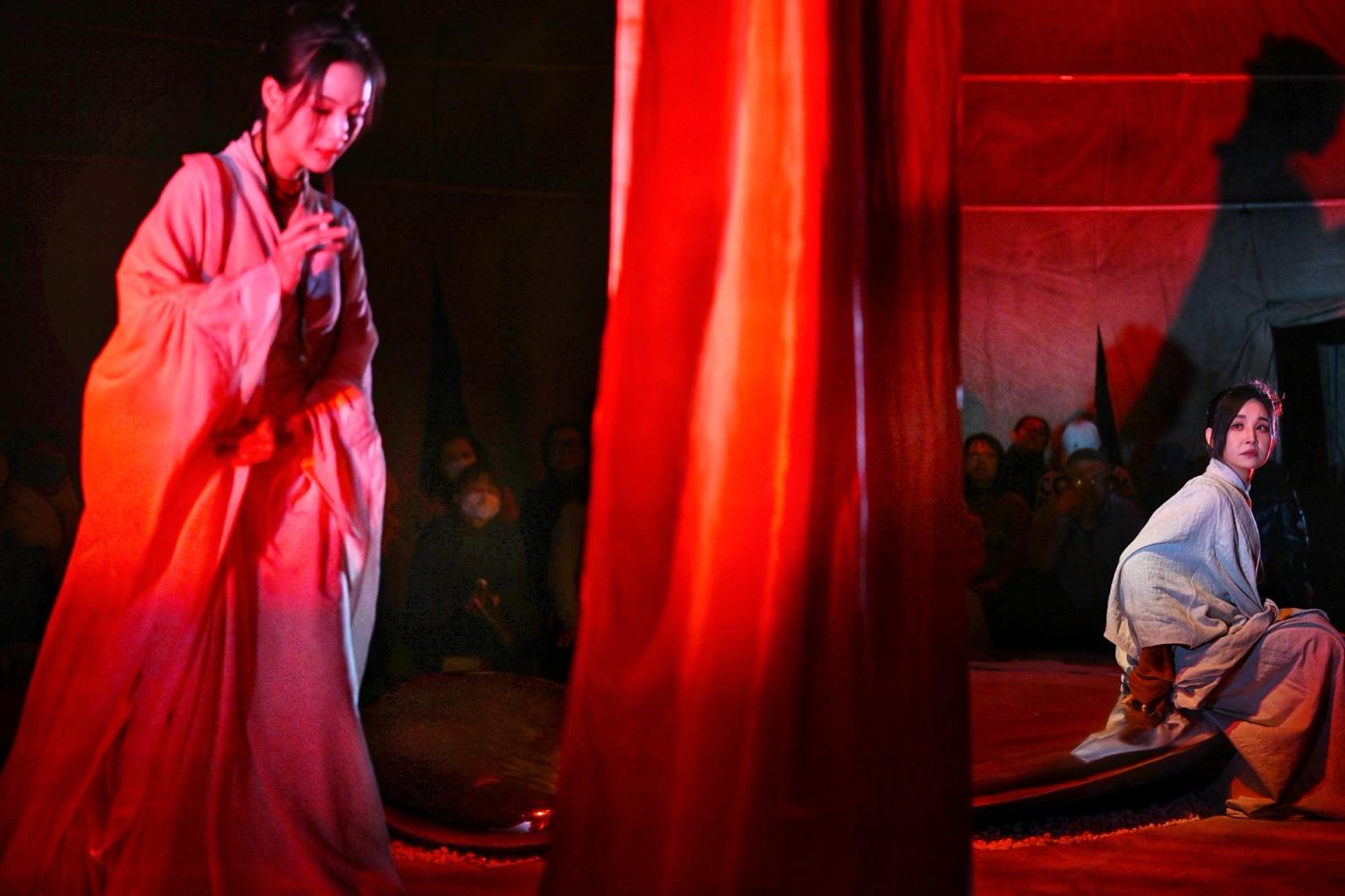 风声猎猎,灯影幢幢,四面楚歌的项羽大帐中,虞姬与吕雉两位互为倒影的女子。日前,北京人民艺术剧院的小剧场佳作《霸王别姬》第四轮上演,在家喻户晓的历史故事之外联想更多可能。