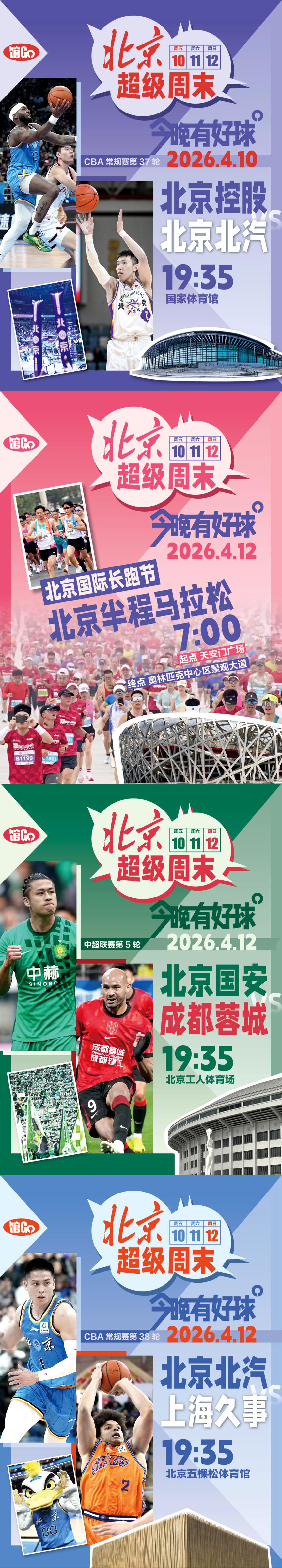 体育赛事是本次“超级周末”的重头戏。从10日晚间国家体育馆上演的CBA“京城德比”,到12日清晨鸣枪开跑的北京半程马拉松,再到当日晚间的两场巅峰对决——工人体育场内北京国安迎战中超联赛领头羊成都蓉城,五棵松场馆同步进行北汽男篮与CBA联赛领头羊上海久事队的较量,来自各地的体育迷将亲身感受这座双奥之城蓬勃向上的体育活力。