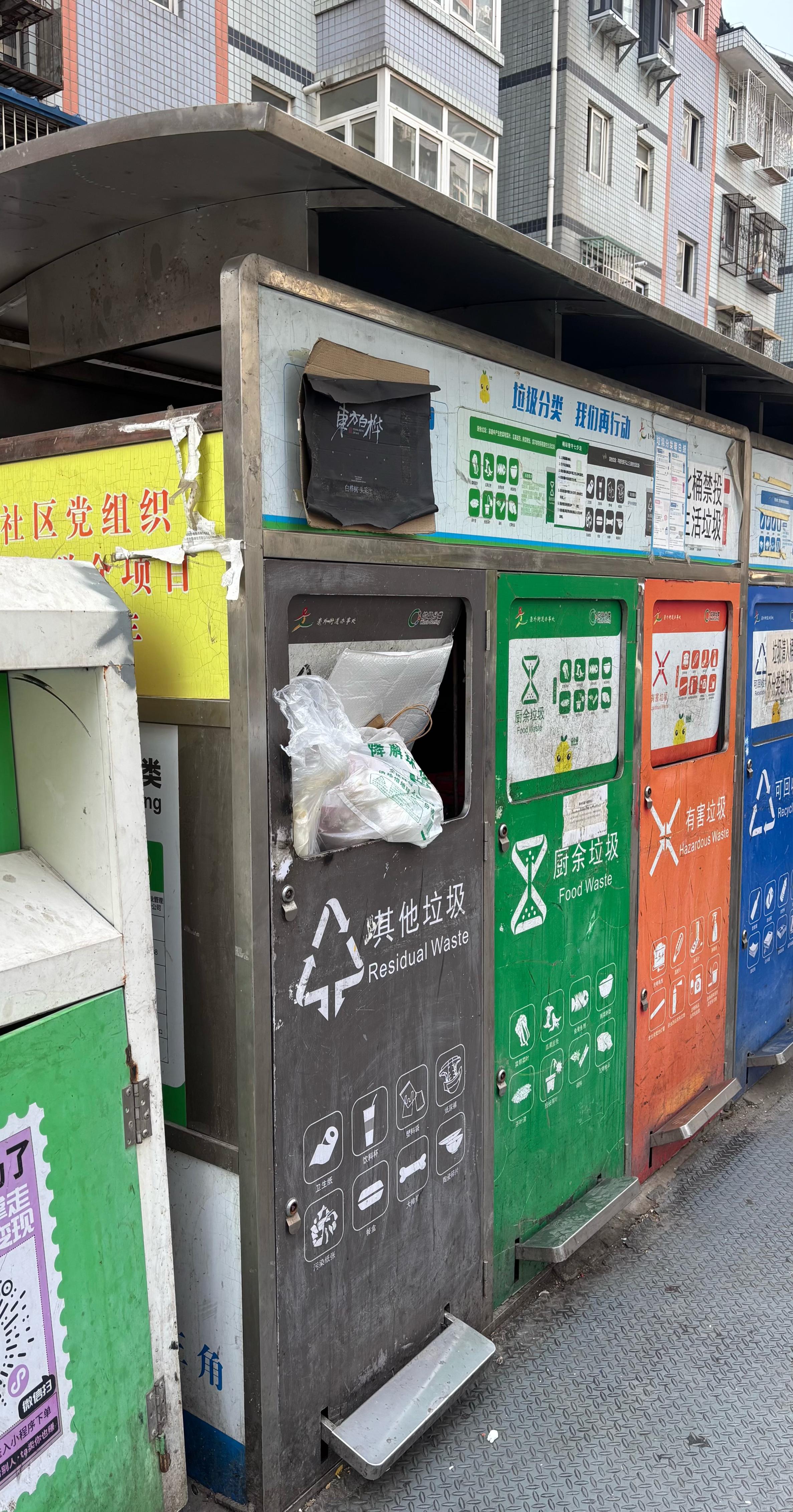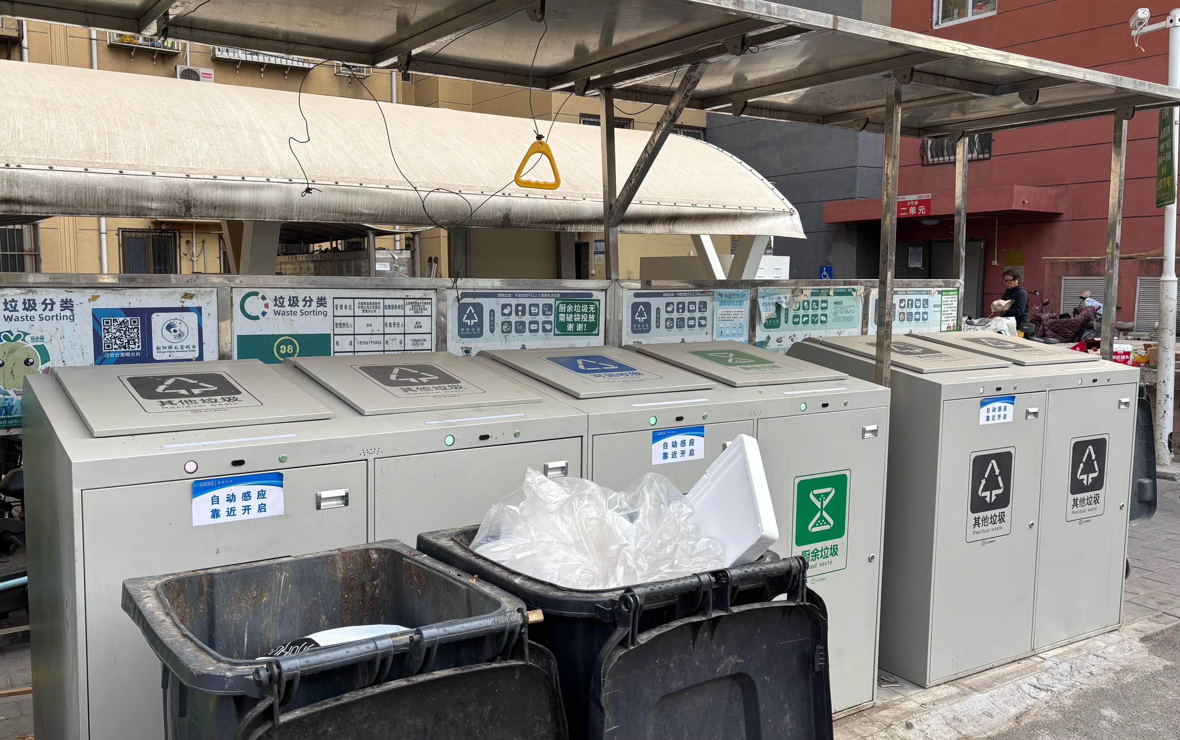 一位家住西城区的居民告诉记者,此前小区进行了老旧小区改造,原有普通垃圾桶站升级为箱房式垃圾桶。为了便于居民扔稍大垃圾,桶站前又配置了几个敞口桶——可想而知,一旦有了能直接“抛入”的桶,后方箱房式垃圾桶的设置意义与实际效果,便也大打折扣了。