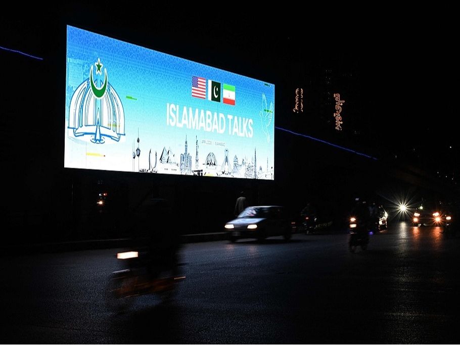 △伊斯兰堡街头的会谈海报