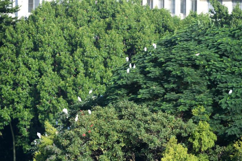鸟儿在南宁市南湖畔的树上休憩(2021年10月12日摄)。