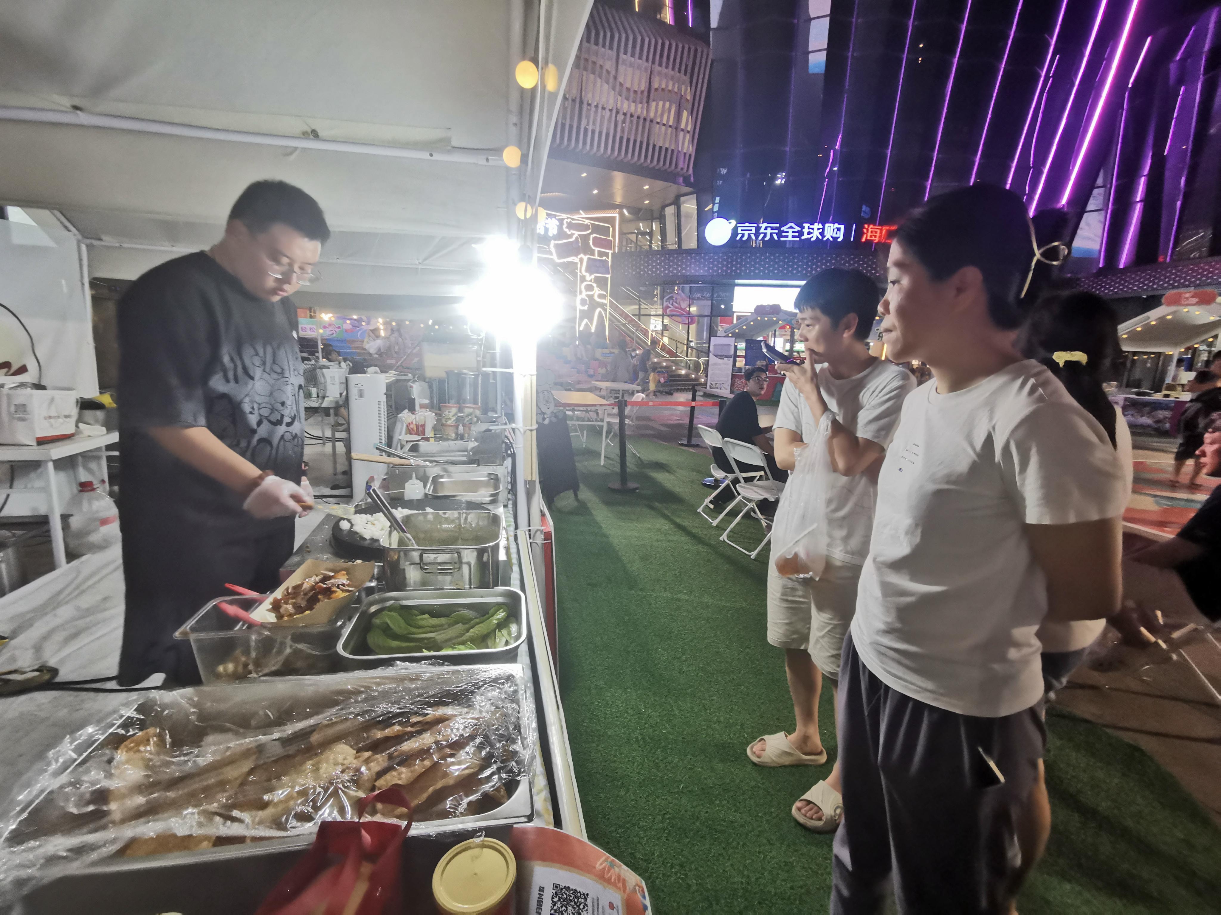 4月15日晚,位于海口市龙华区的王府井海垦广场热闹非凡。舞台上,特色表演轮番上阵;舞台下,各家摊位前人头攒动,京味儿十足的吆喝声与烤鸭的焦香交织弥漫,引得过往行人流连驻足。本届消博会期间,首届首旅海南生活节暨老字号美食节同步举办,为海南本地人和国内外游客带来正宗的京味儿美食,也丰富了消博会期间夜间消费场景。