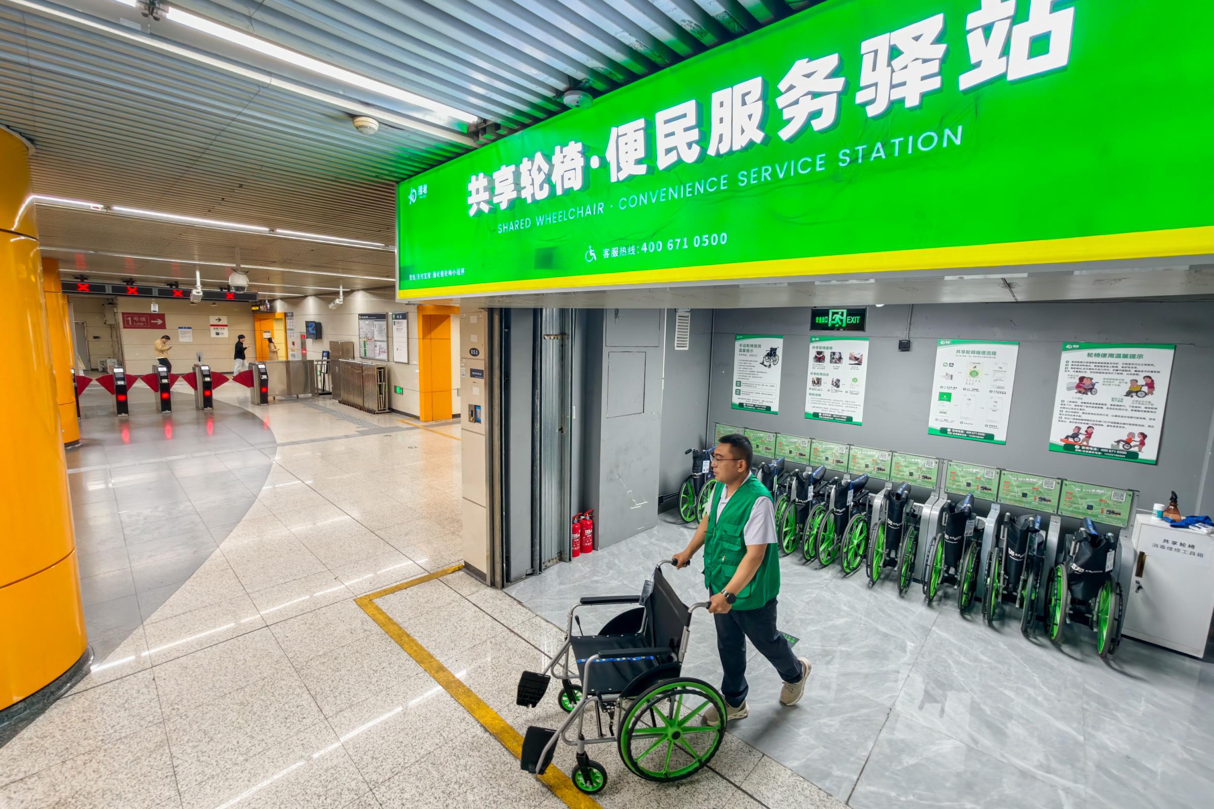 行动不方便的乘客,如今在地铁站里就可以借到轮椅了!今天,北京地铁首个共享轮椅·便民服务驿站投入使用,乘客可在5号线东单站扫码借用,并支持多网点归还。