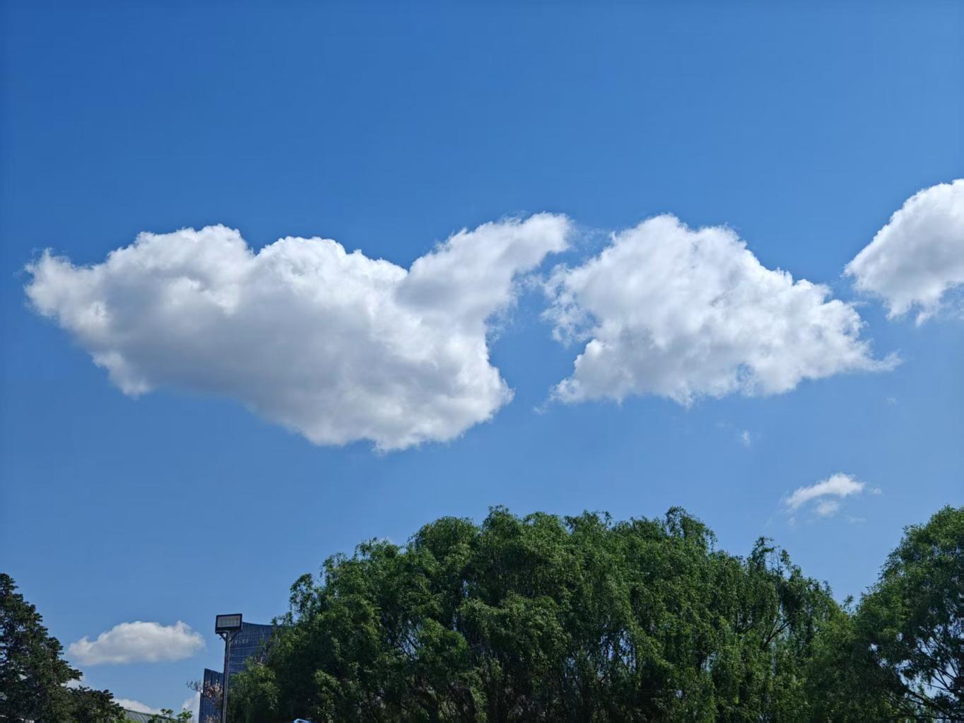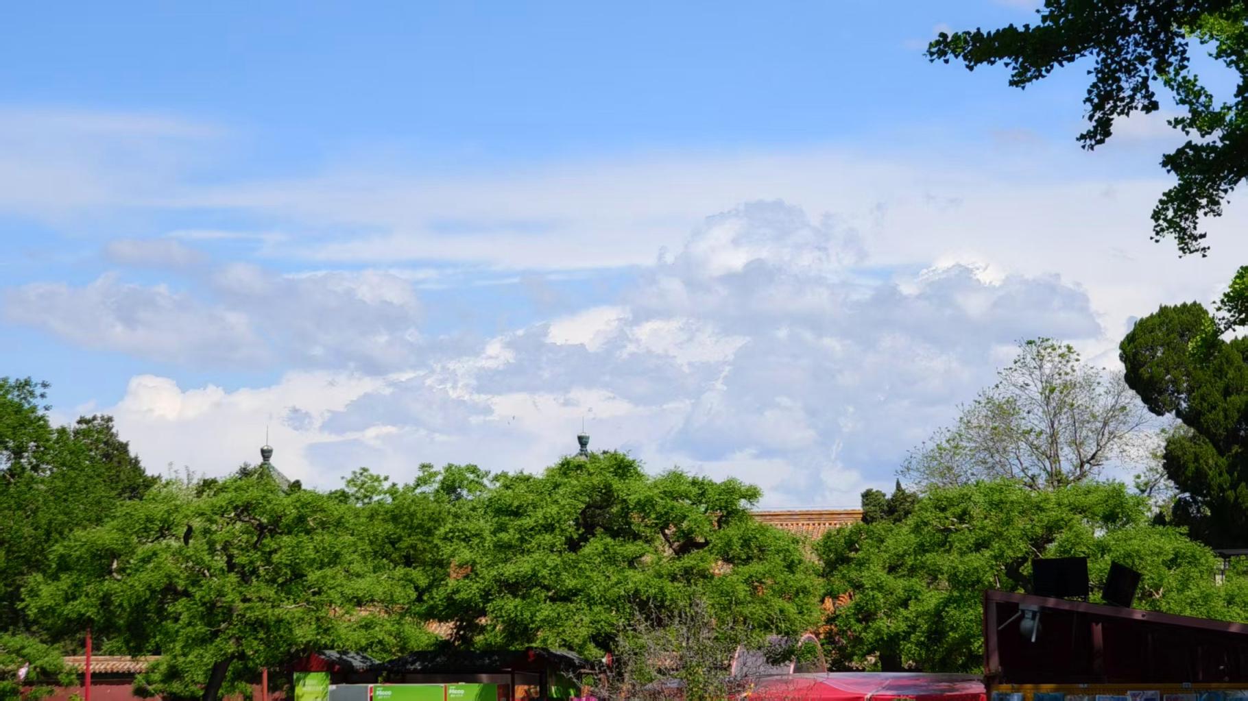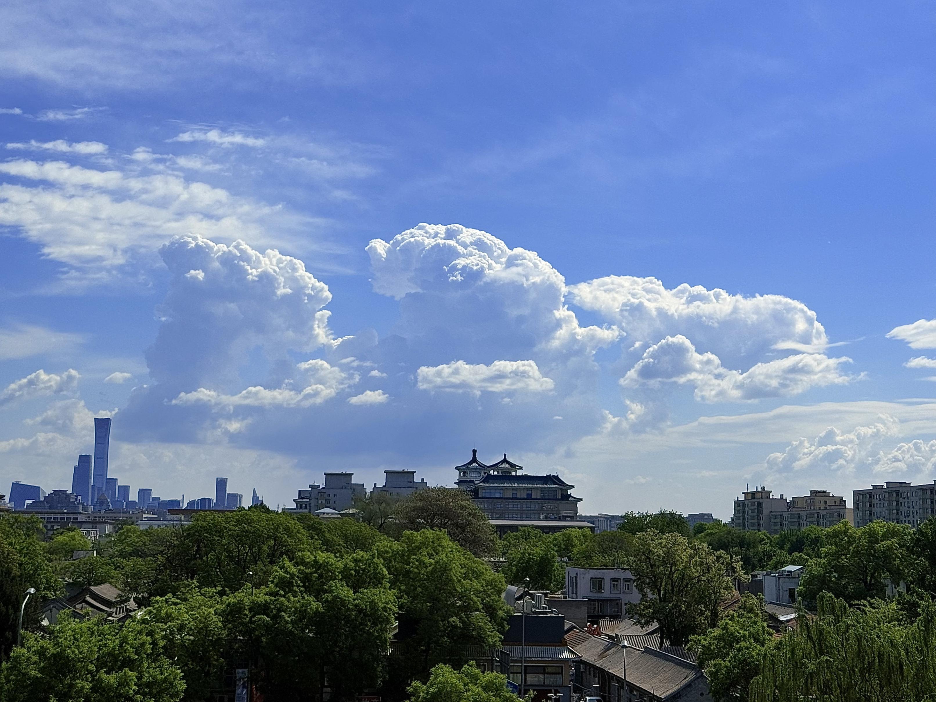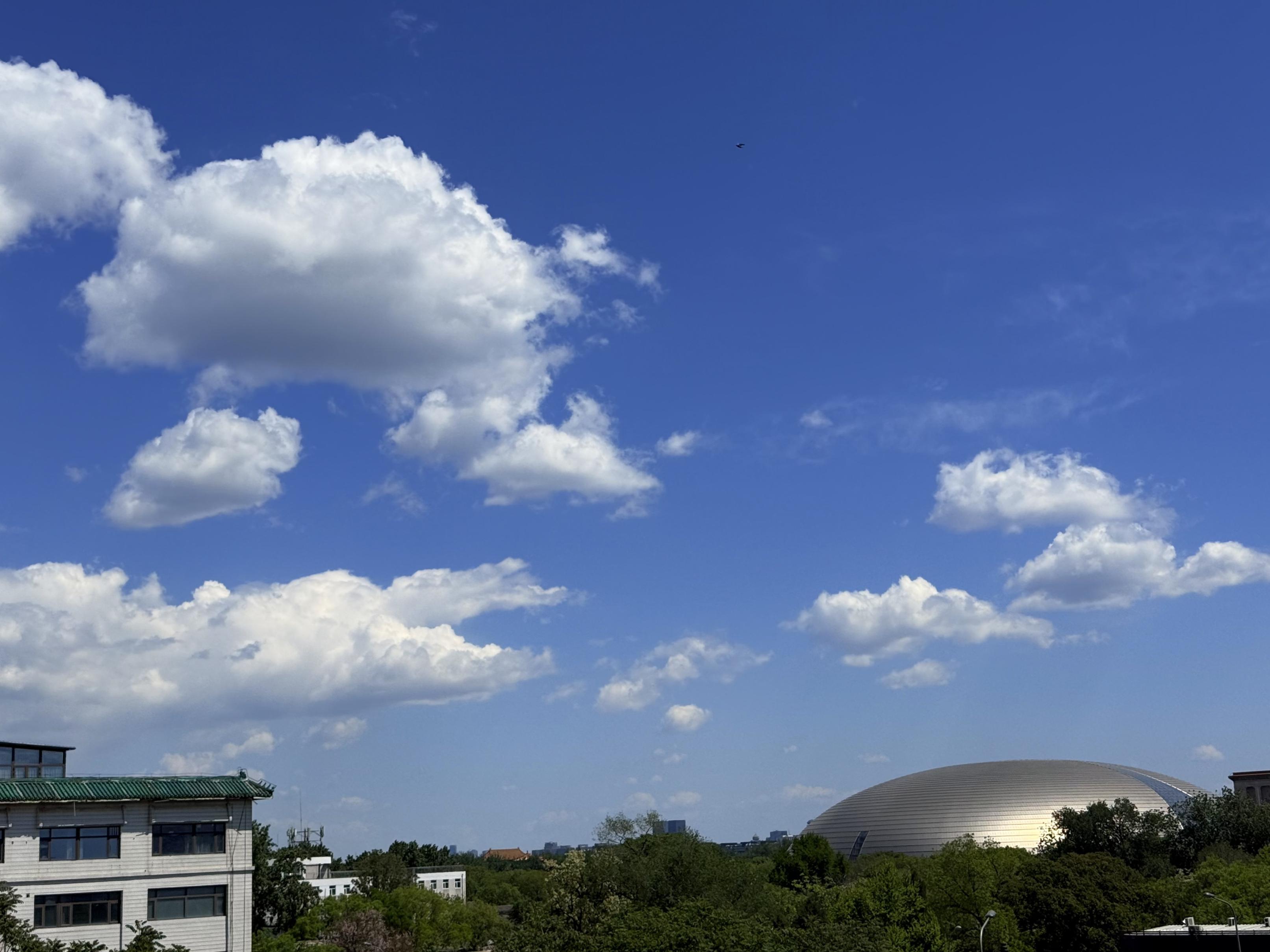 4月28日,北京天空晴朗,感觉整座城市都被蓝天白云“包裹”了起来。
