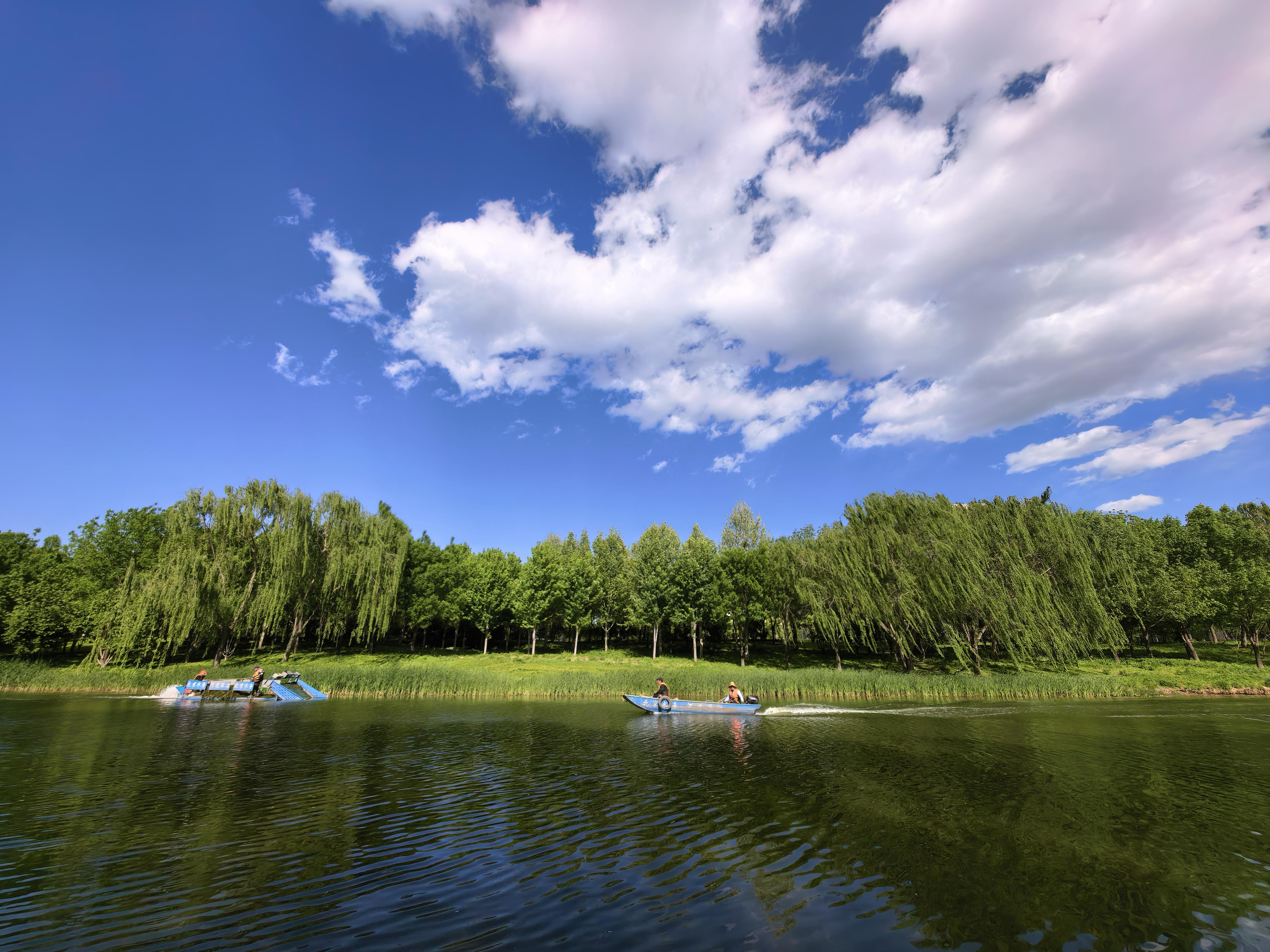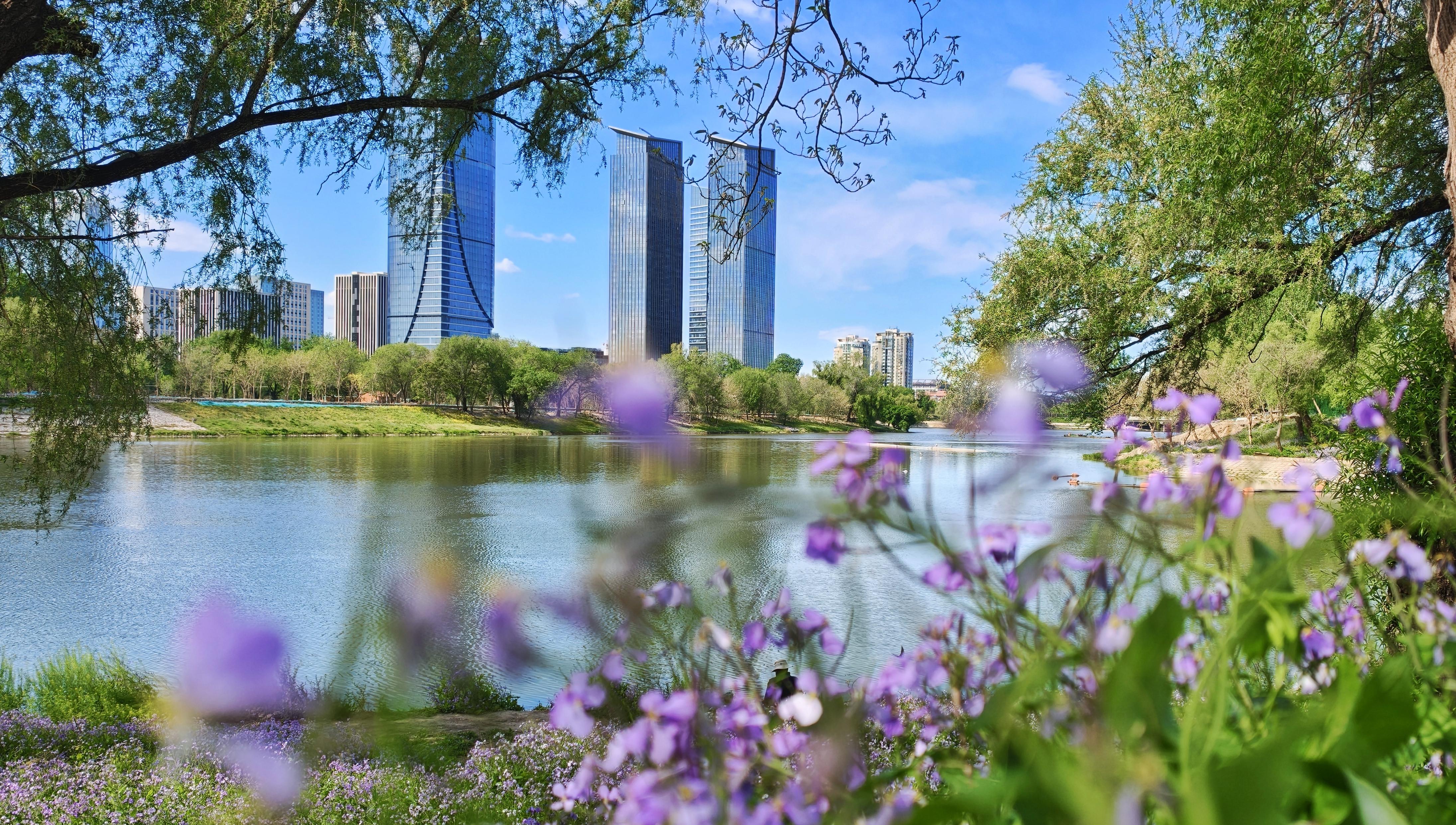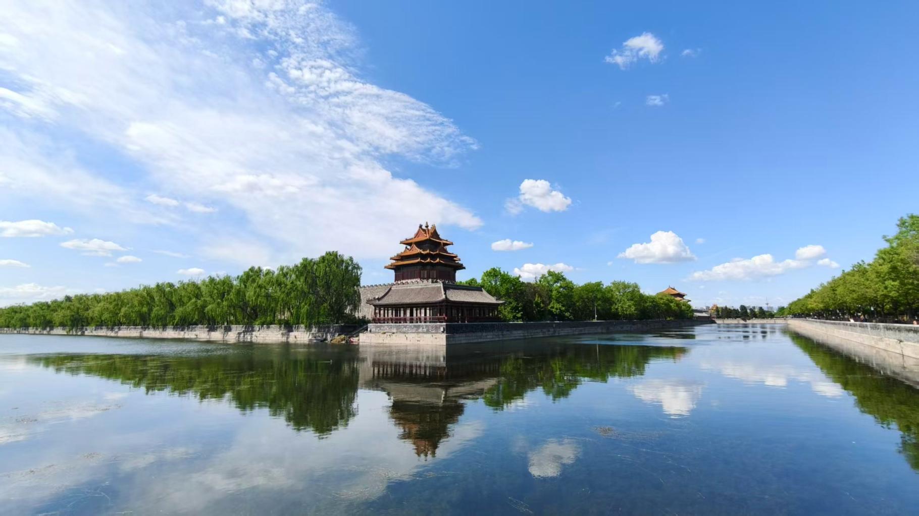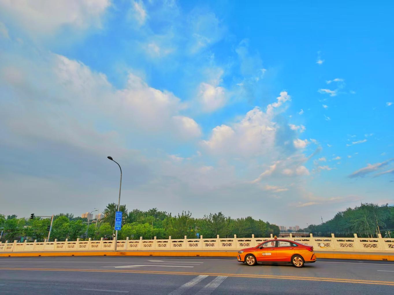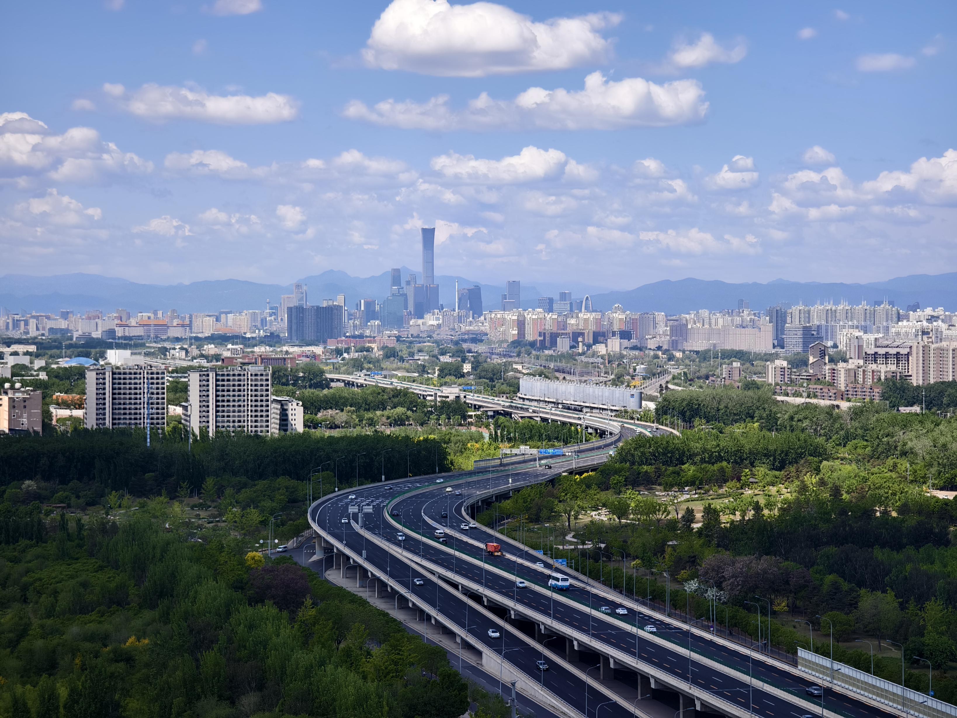 4月28日,北京天空晴朗,感觉整座城市都被蓝天白云“包裹”了起来。