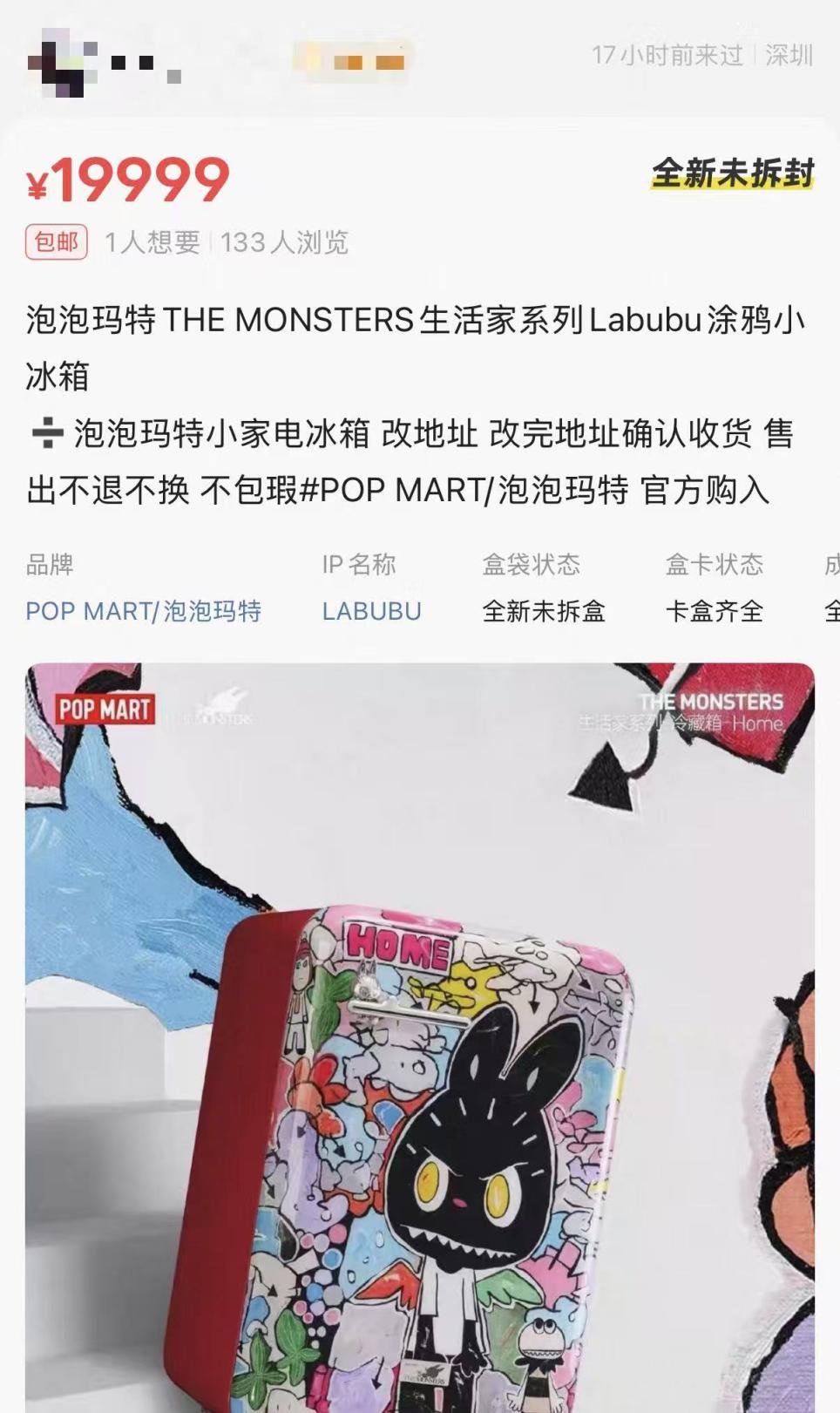 距离正式发售还有两天,泡泡玛特首款家电产品,LABUBU(拉布布)主题冷藏箱已在二手市场掀起一轮疯狂炒作。4月28日,相关话题登上热搜,引发超过3300万次阅读。记者注意到,目前LABUBU冰箱的报价,仍在一路走高:原价5999元,二手报价却已从7500元一路飙至近2万元。