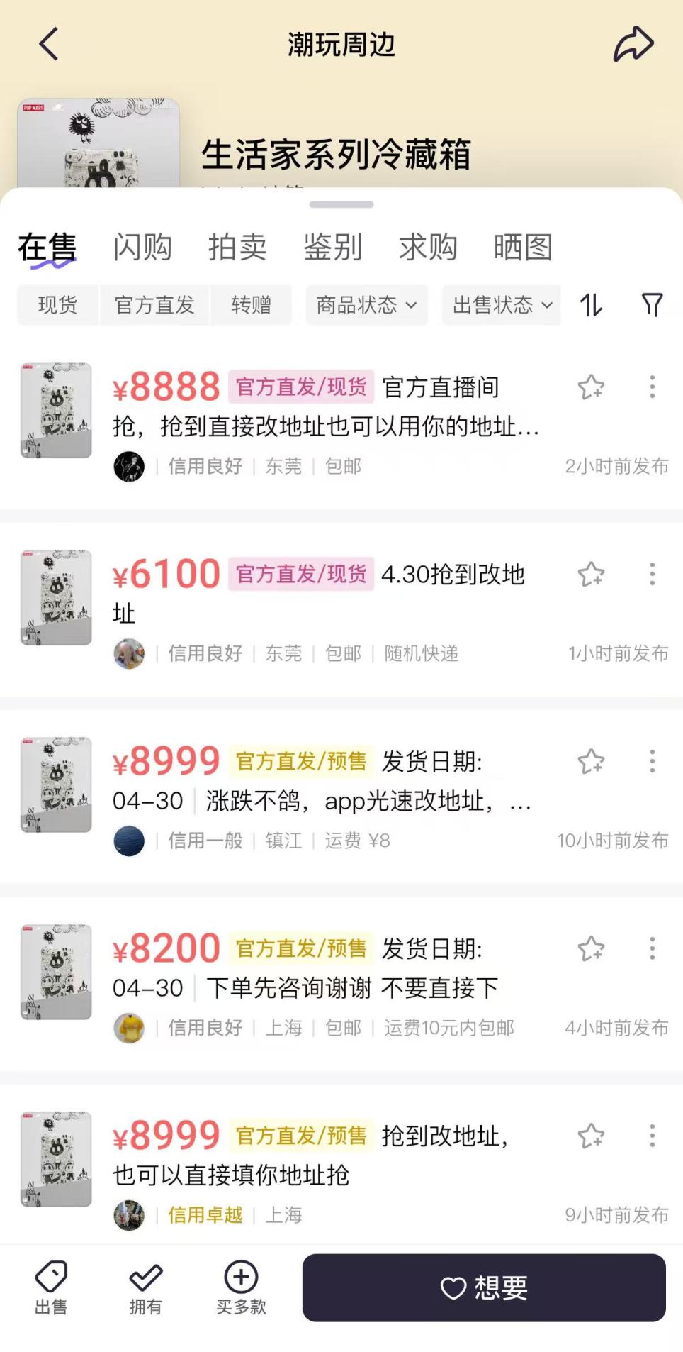 发售日未到,高溢价已至。记者注意到,在闲鱼、千岛等多个平台上,大量卖家挂出了远高于官方售价的链接。其中,闲鱼上普遍报价在8999元左右,最高一笔甚至喊出了1.99万元的天价;千岛平台上,多数卖家的报价也在8000元以上。以8999元的报价粗略计算,一台冰箱转手就能赚3000元,溢价幅度超过50%。