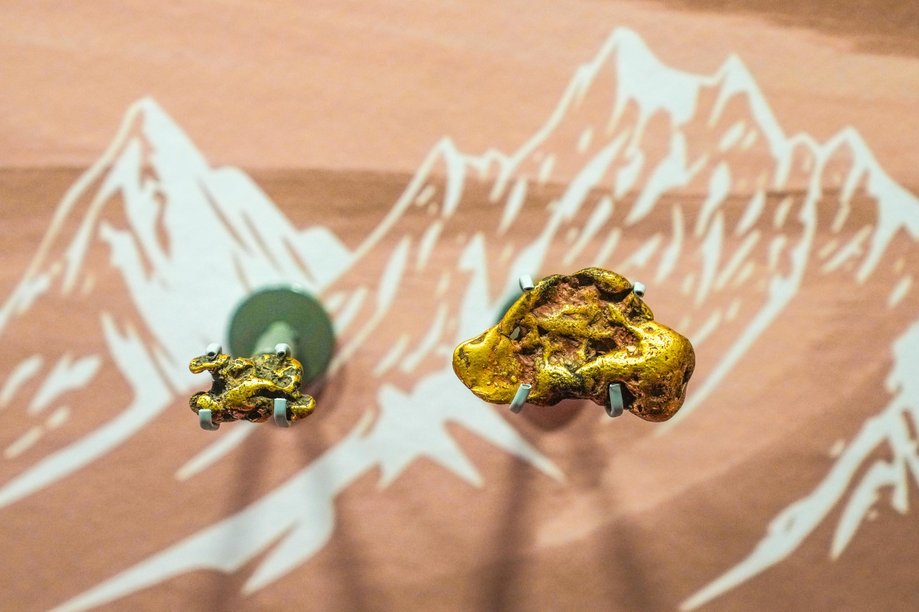 同一展柜内展出了两件金块,