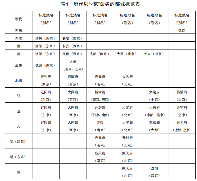 中国历史朝代,常有多个都城,其中一为国都、其他皆为陪都。如:周代燕国曾有五座都城,一为初都,在今北京房山区琉璃河镇董家林村,即琉璃河遗址;二为易都,在今河北雄安新区,即南阳遗址、古贤村遗址;三为上都,即蓟城;四为中都,在今北京房山区窦店村西,即窦店古城遗址;五为下都,在今河北易县城东南,即燕下都遗址。西周从周成王始,有丰邑、镐京、洛邑三都;东汉也有三都,即:东都洛阳、西都长安、南都宛;等等。这些都城,常依地理方位,称为“×京”,如东京、西京、南京、北京等,分别表示位于疆域东部、西部、南部、北部的都城之意。如:北宋“四京”、辽“五京”等。在“×京”称谓中,“×”为专名,“京”为通名。