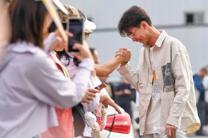 6月7日,在位于吉林长春的吉林省实验中学考点,考生入场前与老师握手加油。新华社记者 张楠 摄