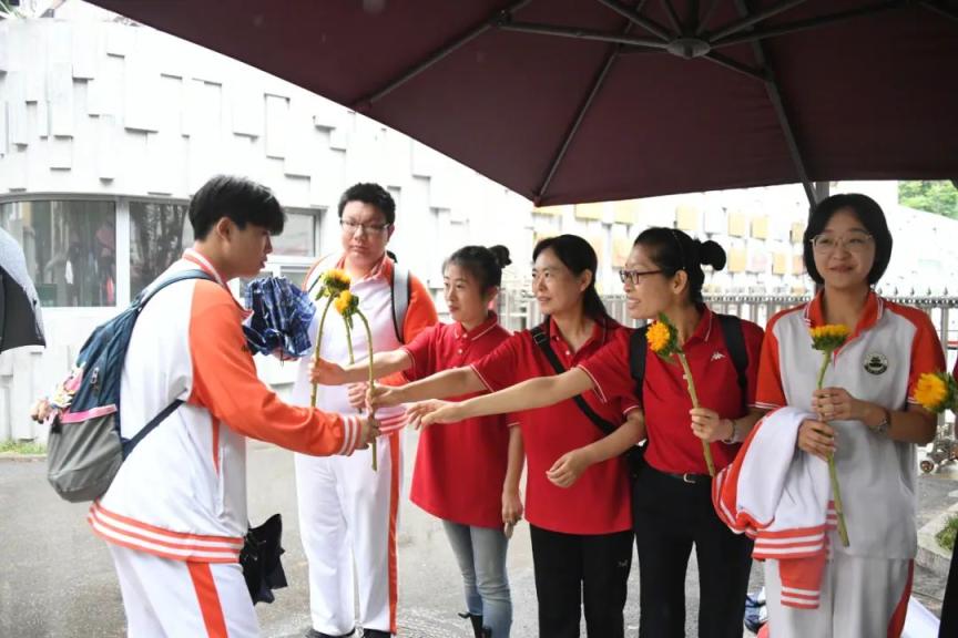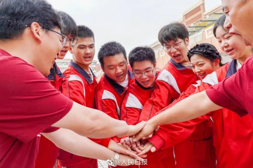 6月7日,在位于吉林长春的吉林省实验中学考点,考生入场前与老师击掌加油。新华社记者 张楠 摄