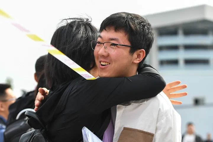 6月7日,在位于吉林长春的吉林省实验中学考点,考生入场前与老师拥抱。新华社记者 张楠 摄